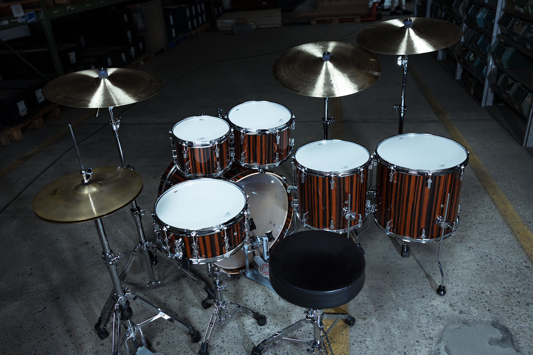 Chrome hardware, special 150th Anniversary AQ2 badges, and a custom ebony bass drum head with commemorative logo set this version apart from the standard AQ2 range.