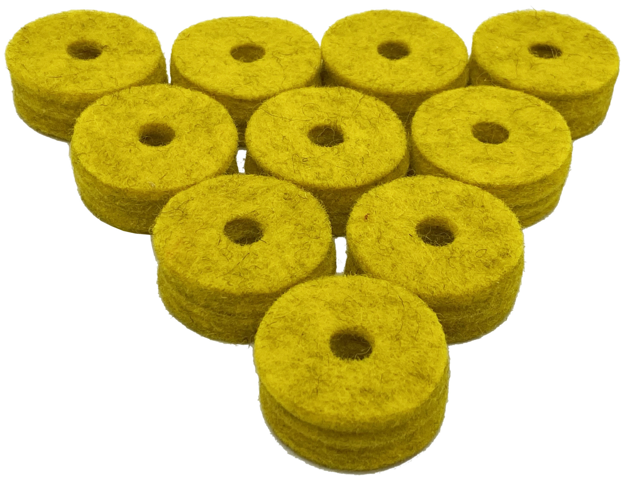 10 PACK 1.5″ X 0.5″ yellow natural wool cymbal felts.