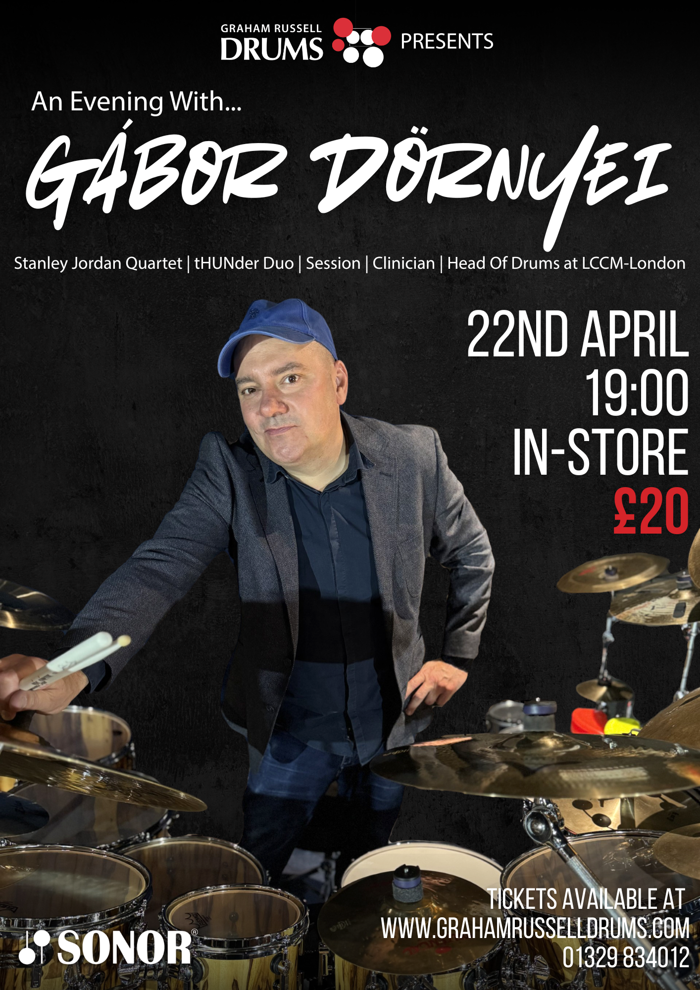 We’re delighted to announce that jazz drumming legend Gábor Dörnyei will be returning to Graham Russell Drums for another ‘An Evening With…’ event.