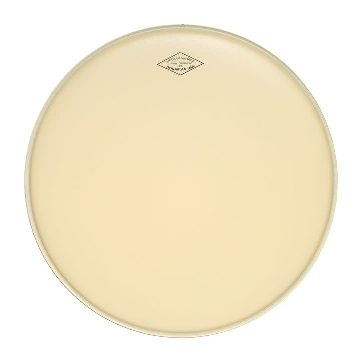The Modern Vintage single-ply, 7mil, thin weight drumhead, features a special coating that has the look, the feel and the warm sound of a calfskin head. The coating is slightly thicker and helps to slow the vibration of the head resulting in a lower, warmer tone with a softer feel and a classic vintage look. These thinner, tom, snare, and bass drumheads and are suitable for any musical setting where warm tone and full resonance are welcome. The thin weight Modern Vintage models are perfect as either batter or resonant heads when you are looking for more high overtones. These Modern Vintage heads make the drums look as good as they sound.