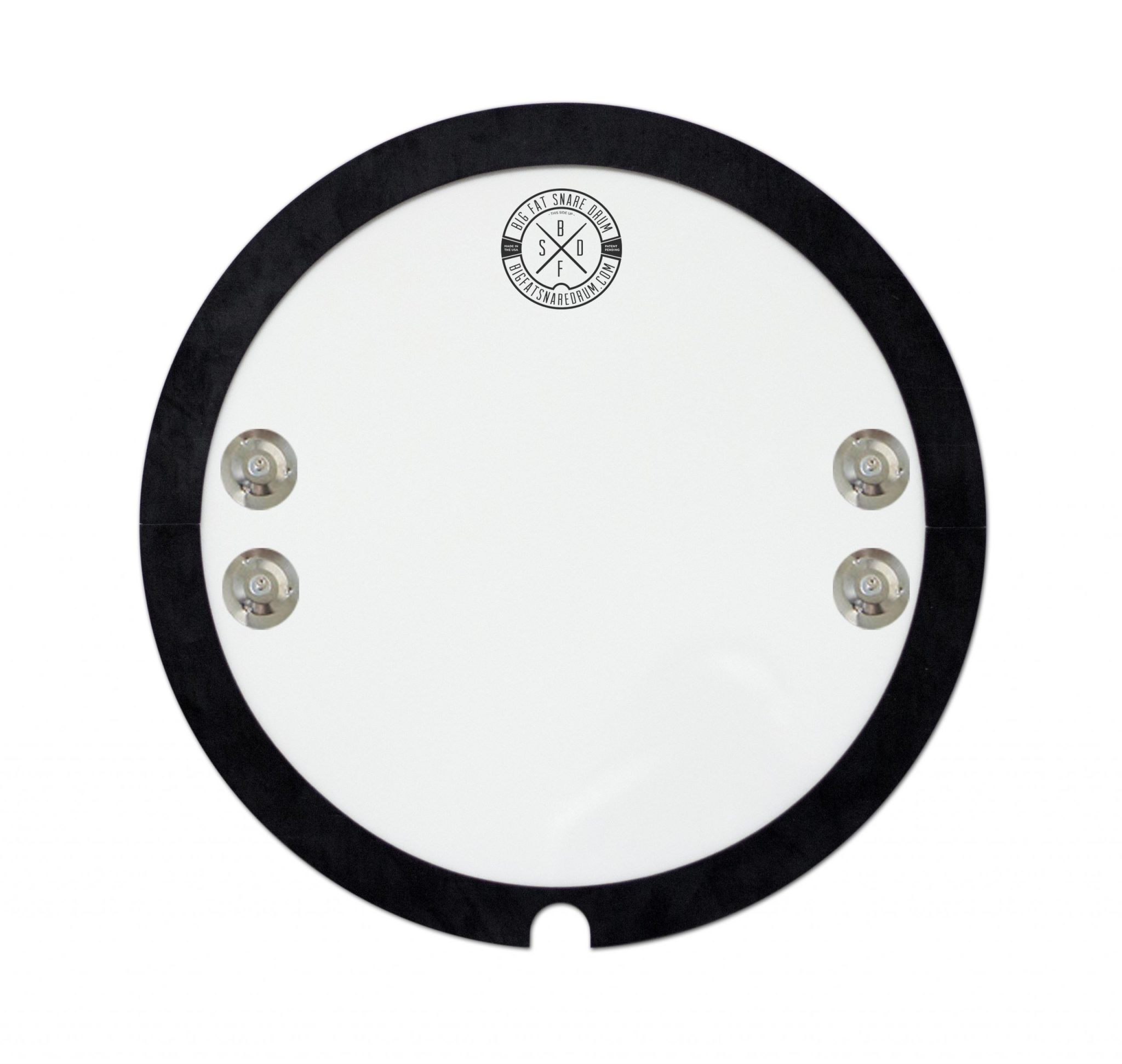 The BFSD was engineered to effortlessly transform any Drum into your very own Vintage, Beefy, Thumpy 70’s-inspired BIG FAT SNARE DRUM. BFSD lowers the fundamental pitch of the Drum without any of the hassle. Simply placed on top of your existing Snare or Tom skin, the custom blend of patented rubber and plastic instantly face-lifts your medium to high-pitched tuned Drums and delivers that sought after, authentic, deep & warm tone we all know & love. Equipped with a thumb cut out for quick removal, a rubberized gasket for weight, balance and stability, the BFSD was designed for the drummer’s convenience and makes it easier than ever to achieve that signature sound with no need to retune or bring extra drums. Created for the drummer, by the drummer, make everyone jealous with your Big Fat Snare Drum.