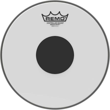 The Controlled Sound® Smooth White Top Black Dot™ drumheads features focused midrange tones with a well-defined attack. Constructed with 1-ply of 10-mil Smooth White film and a 5-mil Top Black Dot™, Controlled Sound® Smooth White Black Dot™ drumheads provide articulate attack and projection with added durability. The drumhead’s outer area offers enhanced tone and sensitivity while the center Black Dot™ adds durability and overtone control.