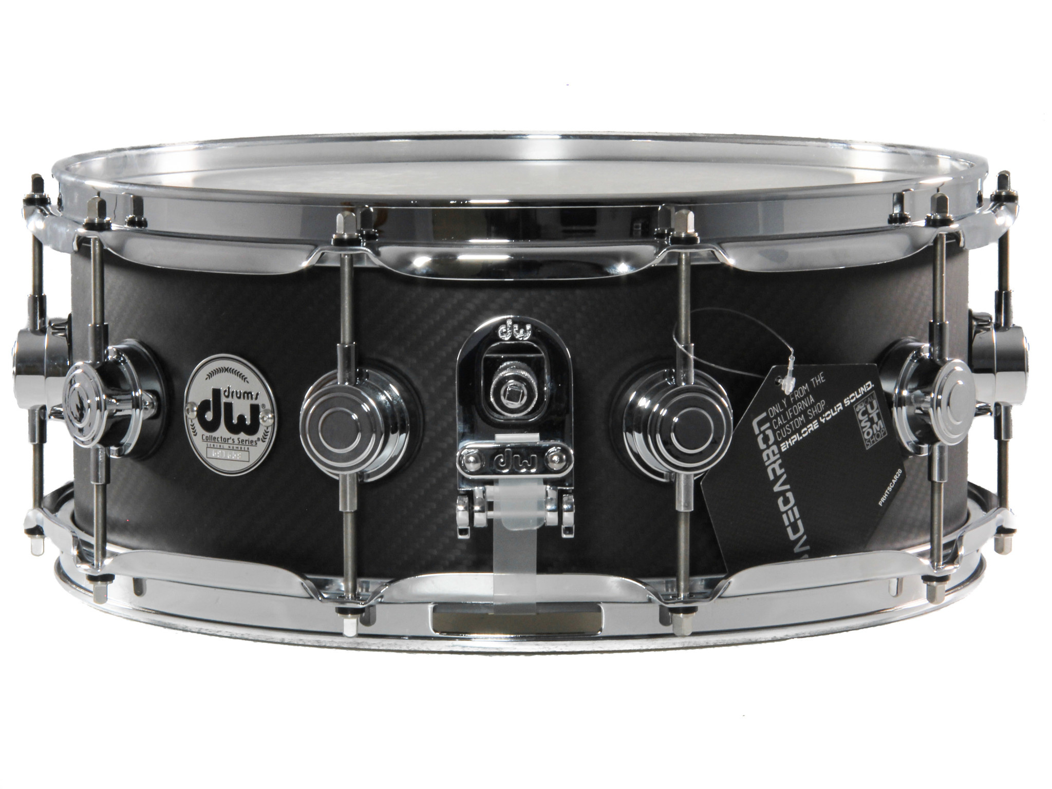 Extreme dynamic sensitivity with crisp, punchy tones. The DW Collectors Carbon Fibre 14 x 5.5'' Snare Drum features a lightweight and durable carbon fibre design, offering wide-dynamic sensitivity and crisp, punchy tones which are especially ideal for loud playing situations. The carbon fibre shell provides the power and projection of a metal shell snare drum but without the ringing overtones. The tone is crisp, clear and extremely versatile - use it for any style and any setting.