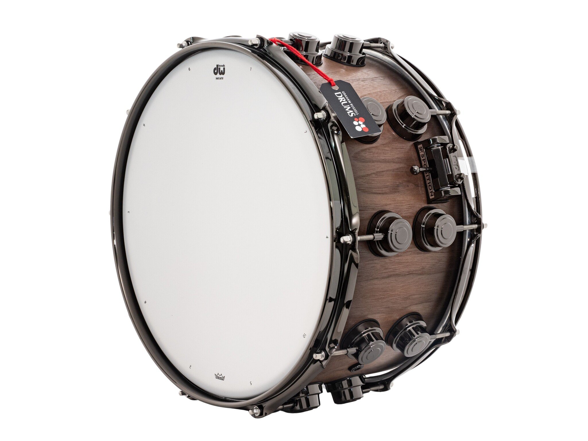 This DW Collectors Series 14" x 7" Pure Walnut Snare Drum, Satin Natural is now available with us at Graham Russell Drums.