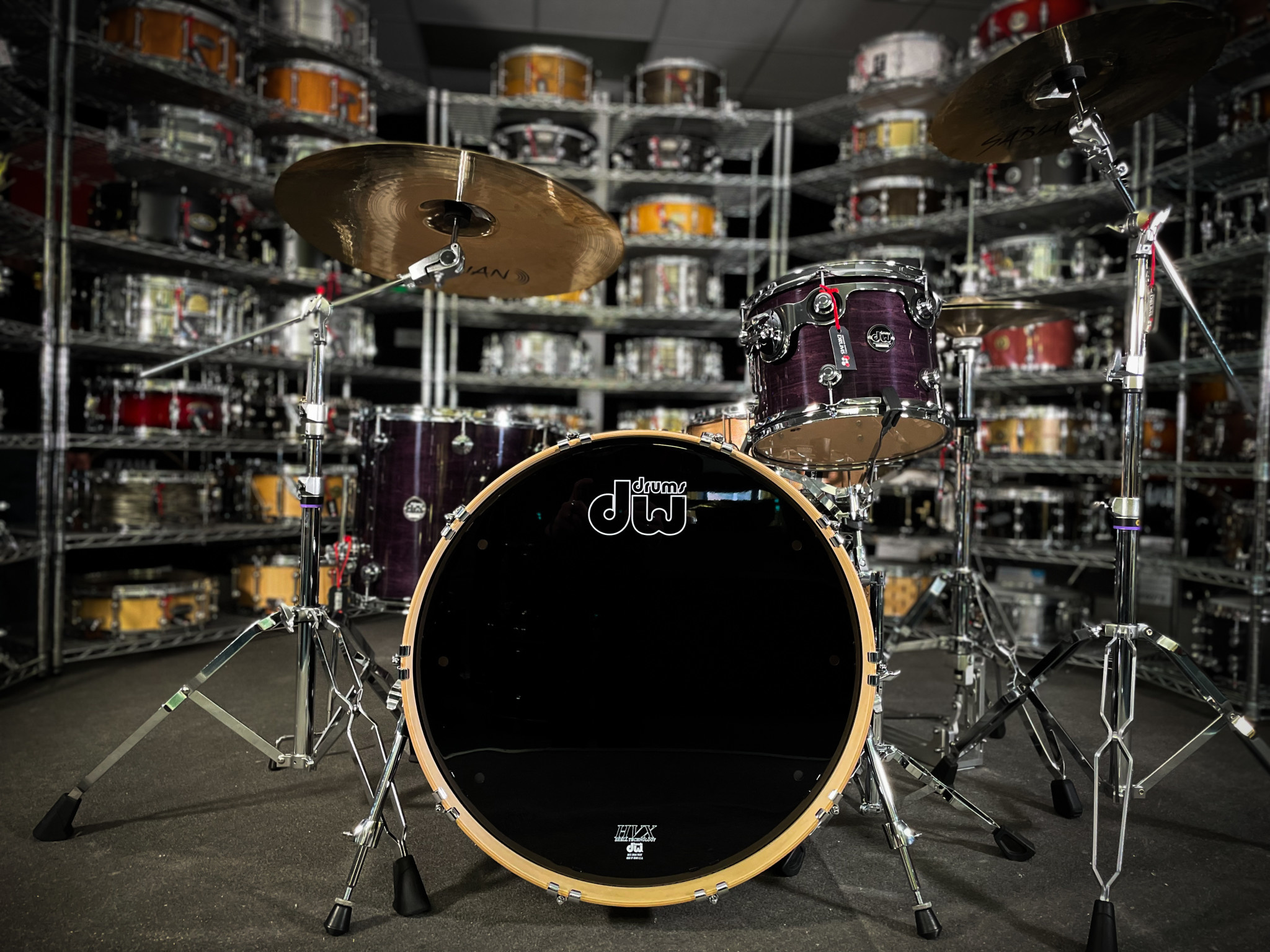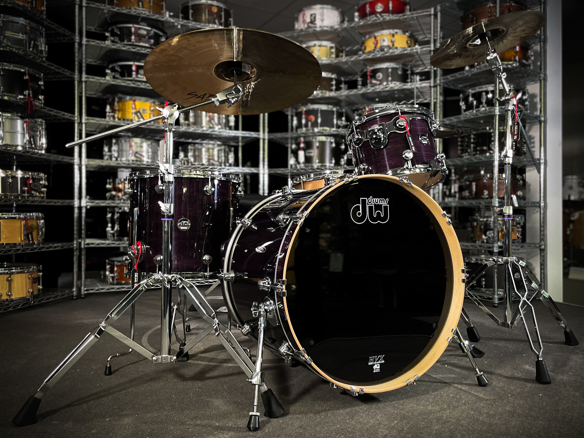 This is a DW drum set in every way. No detail has been overlooked, no corners have been cut. Its look and sound are decidedly DW. Custom-inspired, with a new Quarter Turret lug, low mass die-cast claw hook, new badge, logo head and your choice of 5 hand-sprayed Specialty Lacquer, a Tobacco Satin Oil, or 5 ultra-durable FinishPly™ finishes, it's designed to get noticed and most importantly, Performance sounds like what you'd expect from DW. Easy to tune, superior sounding HVX shells, along with DW heads by Remo USA, STM™ (Suspension Tom Mounts), True Pitch™ Tuning and DW 45 degree back-cut bearing edges, all make these drums sing.