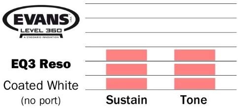 Evans 22-inch EQ3 single-ply coated white resonant bass head offers a warm and punchy sound with a controlled, short decay that's ideal for both live and studio applications.
