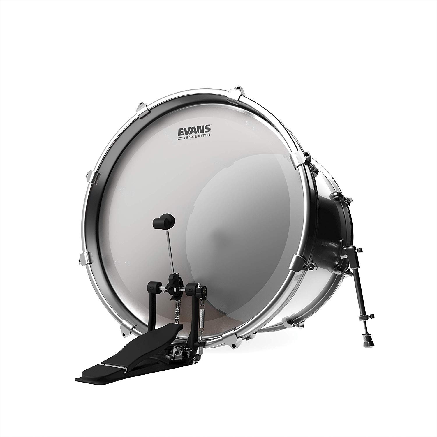 Evans EQ4 series features a special, single ply of 10mil film that provides durability and a woody attack that speaks live and in the studio.. The fixed internal ring is proportional to the head size, optimizing control from 18" to 26".
