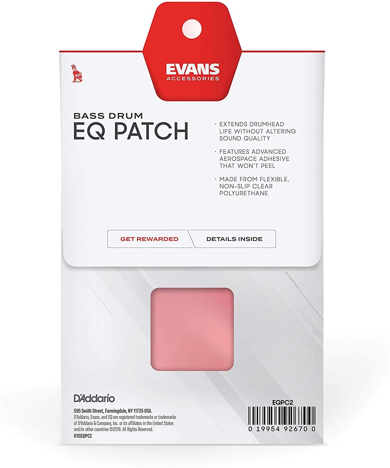 Evans™ EQPC2 is a clear non-slip plastic bass drum patch which increases attack and strengthen the head without affecting sound quality.