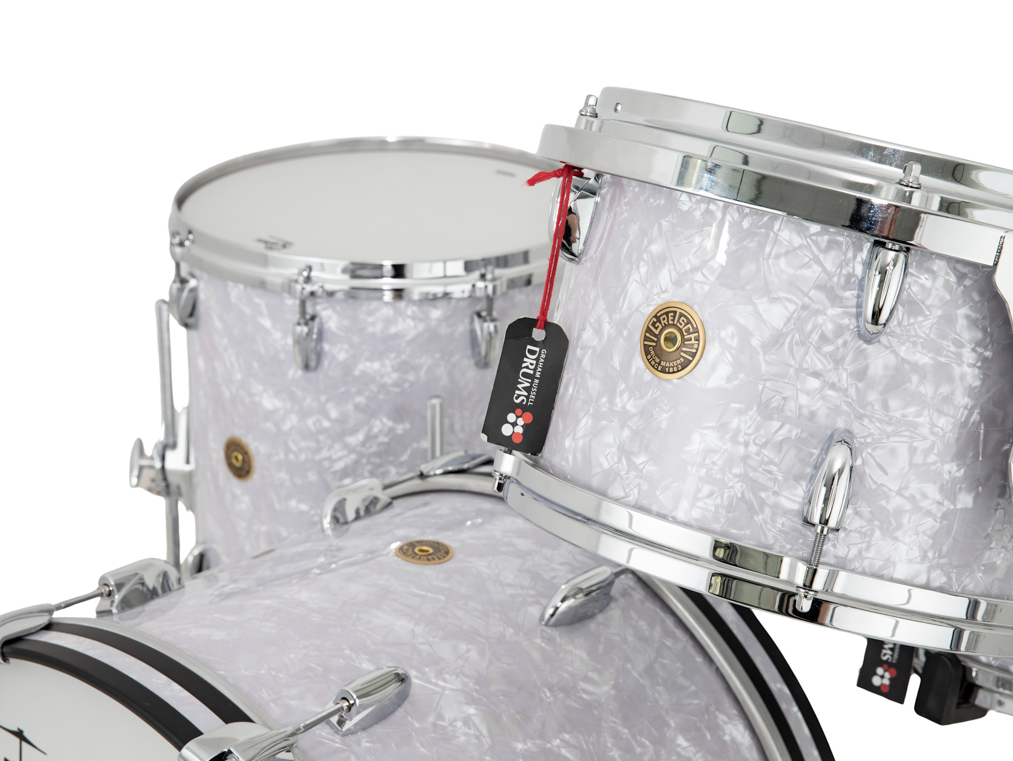 This Gretsch USA Custom 20" Drum Kit, White Marine Pearl is now available with us at Graham Russell Drums.