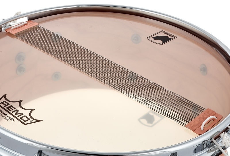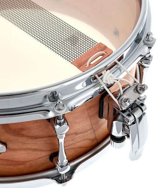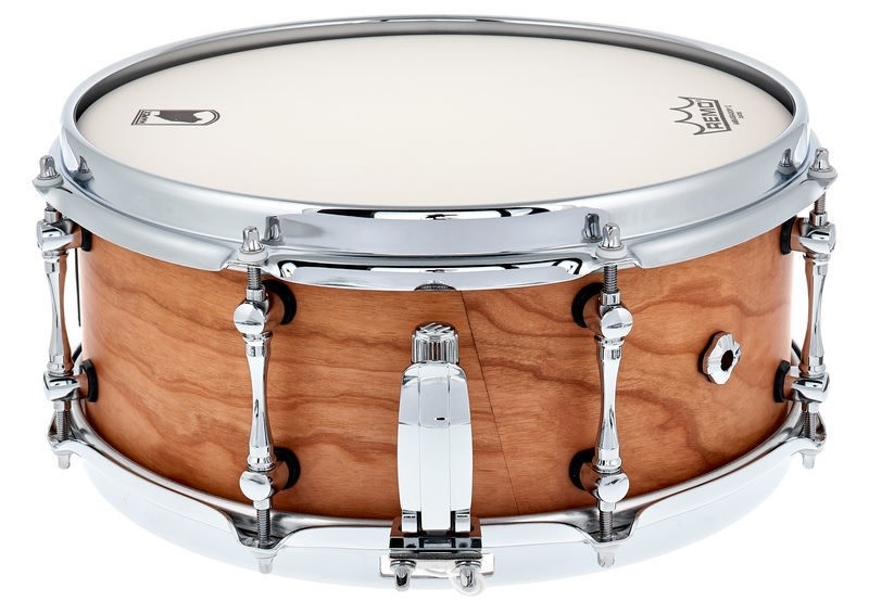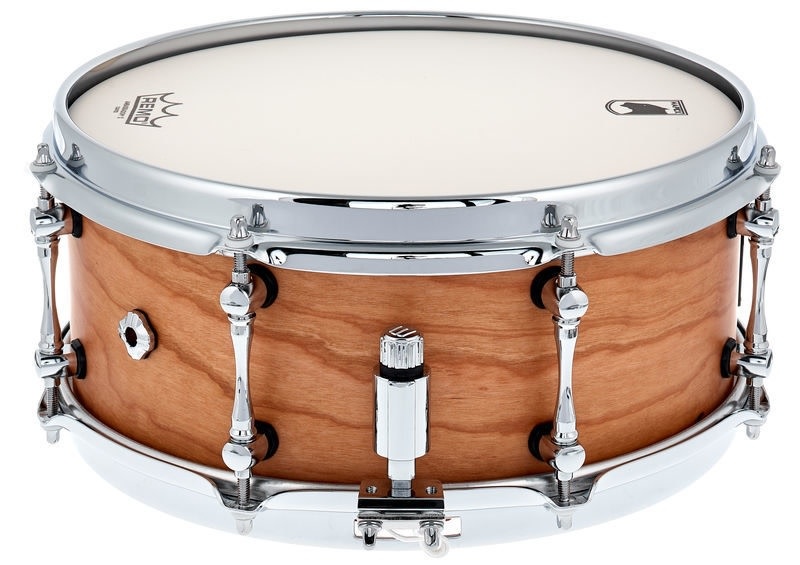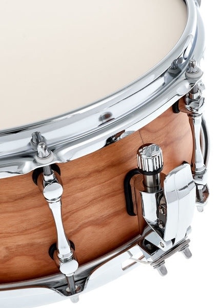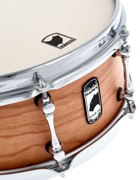 The Mapex Black Panther Cherry Bomb Snare boasts a cherry wood shell for warm, focused projection with an edgy, distinctly rock 'n' roll sound. It also has these high-end features: 10-lug hoops that give you secure, tight resonance; Puresound premium snare wires for an extra-defined rattle; a Cylinder-drive strainer for smooth throw off with a tactile click; and SoniClear bearing edges that give a classically dark, throaty, rock flavor. Mapex Black Panther Design Lab snares are engineered with Mapex's Concept Hybrid approach to sound design, shell composition, and drum construction. The result is a unique and personal instrument with the outstanding, rich tone that a lot of drummers demand.