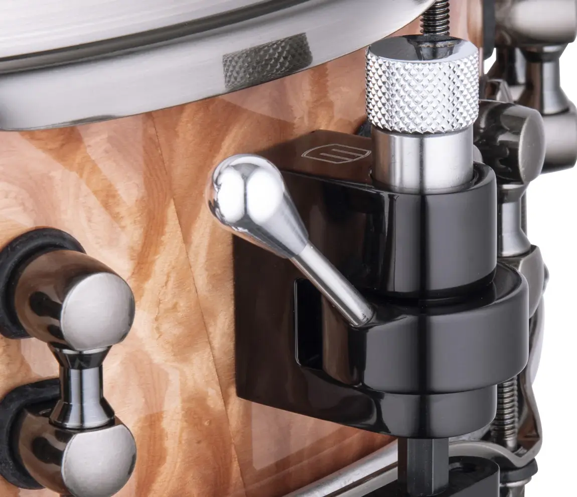 The elegant design of the Black Panther lug has been revised by the Design Lab to form the new Master Tune Lug. The first truly “Locking Tube Lug”, the Master Tune Lug utilizes a small body for the least amount of metal-to-wood contact. A Design Lab-exclusive pressured locking mechanism is outfitted on every lug to keep the drum in tune, show after show.