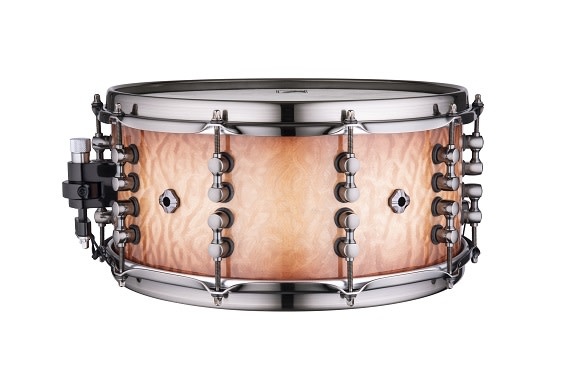 This snare contains a 7-Ply Maple/Mahogany shell with a 4-Ply Maple (Top) Reinforcement Ring and Staggered Locking I-Lugs