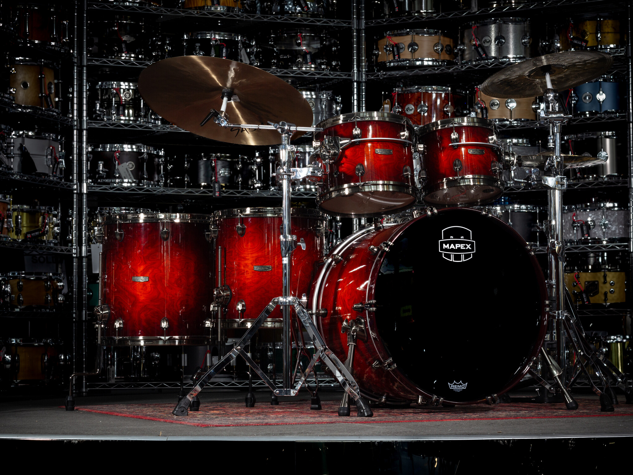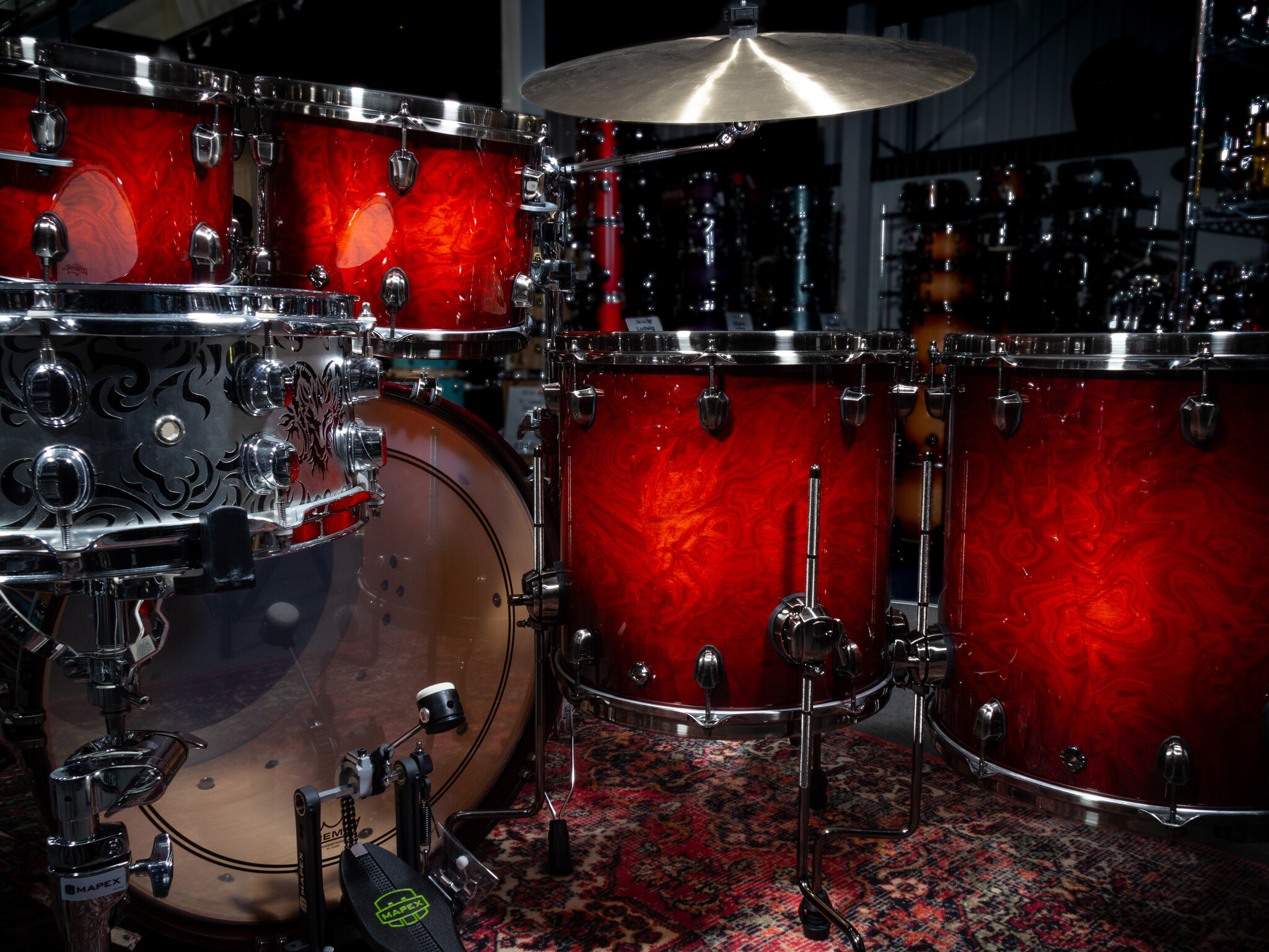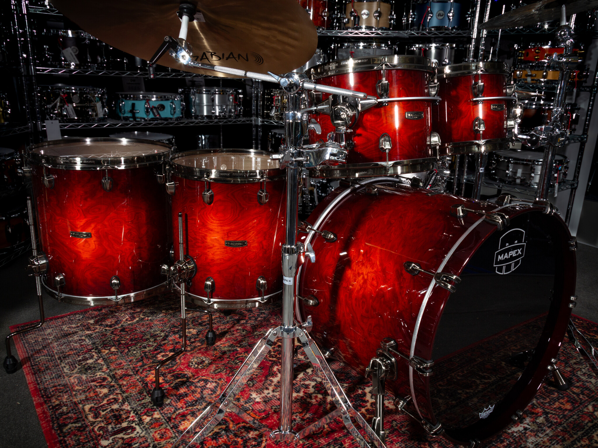 Mapex Saturn Evolution 22" Special Edition Drum Kit, Maple Burl Blaze