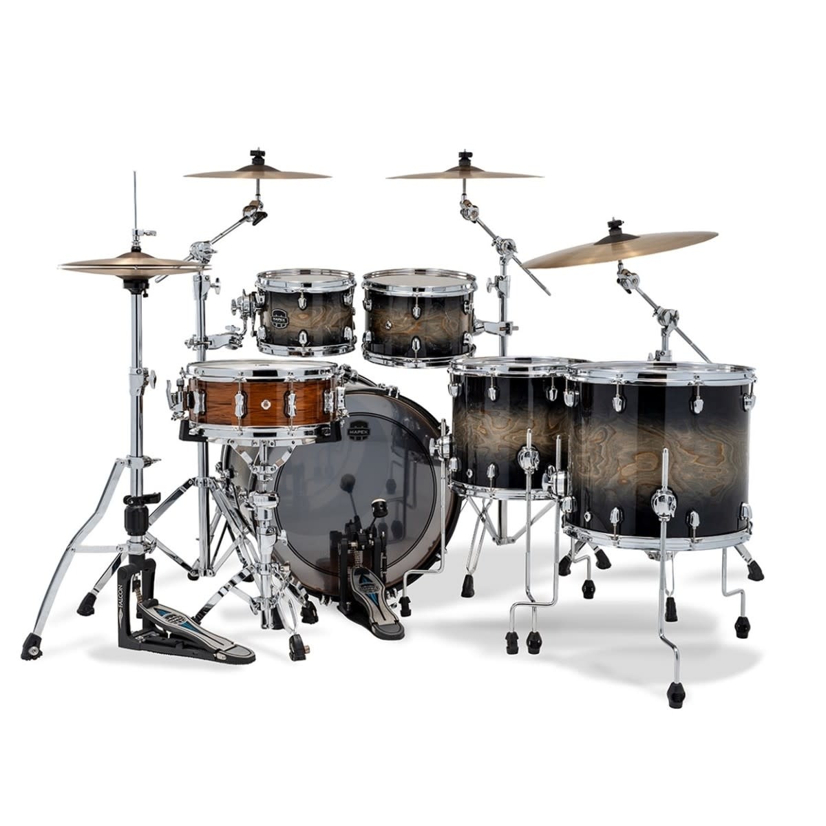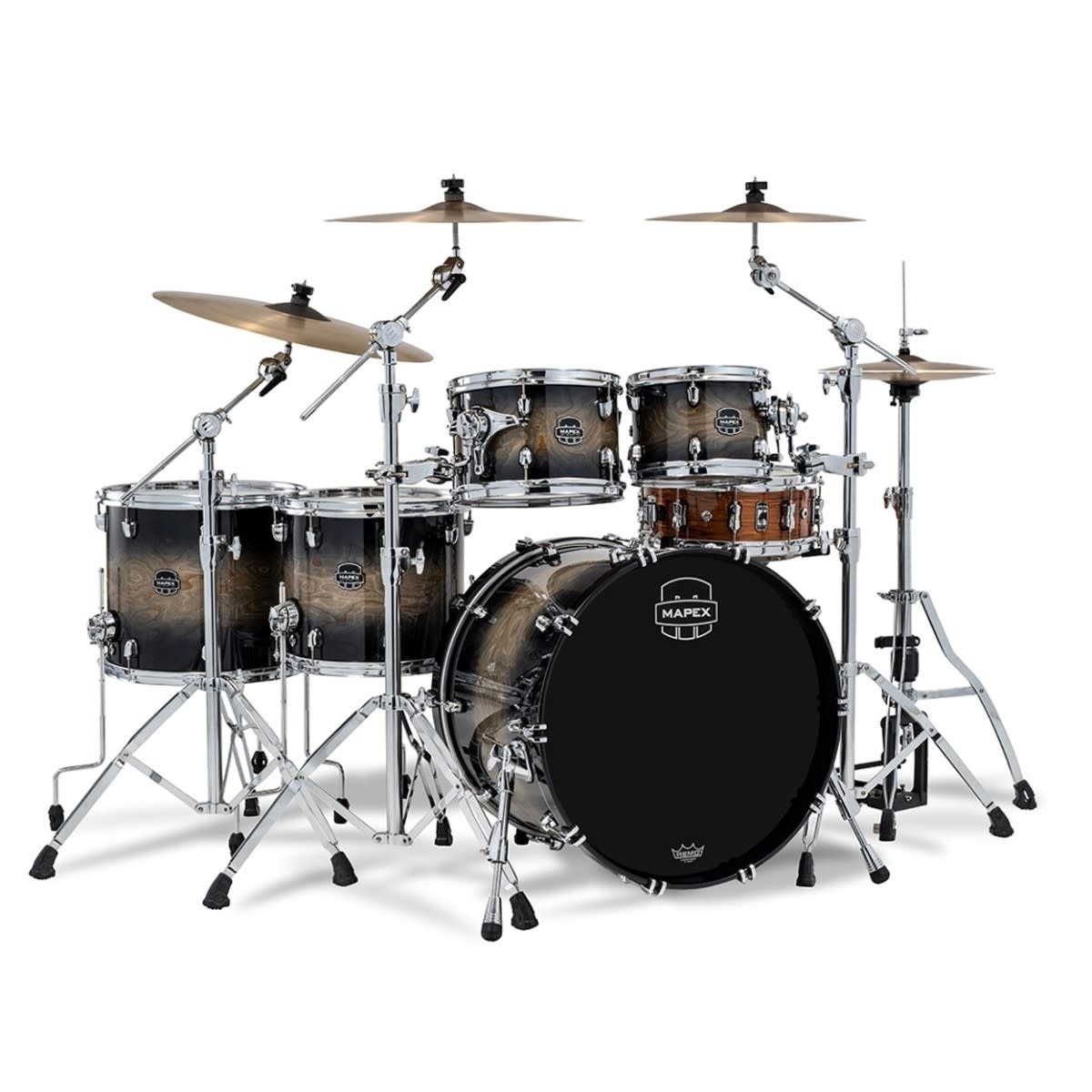 The Saturn VI series is known for combining modern design with a warm, musical shell voice, and this Studioease configuration offers a versatile, gig-ready setup that works equally well in the studio or on stage. Built using Mapex’s hybrid maple and walnut shell construction, the toms and floor toms use a 6-ply build for warmth and responsiveness, while the 8-ply bass drum delivers added depth, punch, and low-end authority.