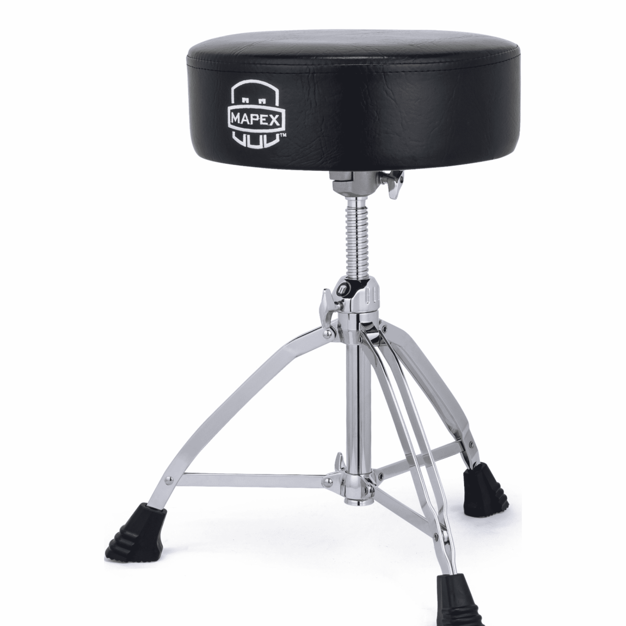 The 14" x 4" round top cushion throne packs premium comfort with no- nonsense features. The wide double-braced tripod base stabilizes the playing experience, the threaded steel spindle height adjustment is easy and convenient to adjust while the included Spindle Lock provides a reliable and secure setting.