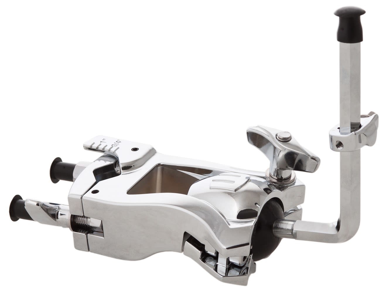 The SONIClear™ Tom Holder is for the addition of a tom or small mounted auxiliary snare drum to a stand without the need for a separate clamp. The low-mass bridge preserves vibration in the head and shell, enhancing resonance and increasing tonal clarity. An Omni-ball arm adjustment allows toms to be positioned at any angle and inverted for convenient bottom head tuning. The spring-hinged adjustable clamp with position markings accommodates tube diameters from up to 1" and makes setup easy and consistent.