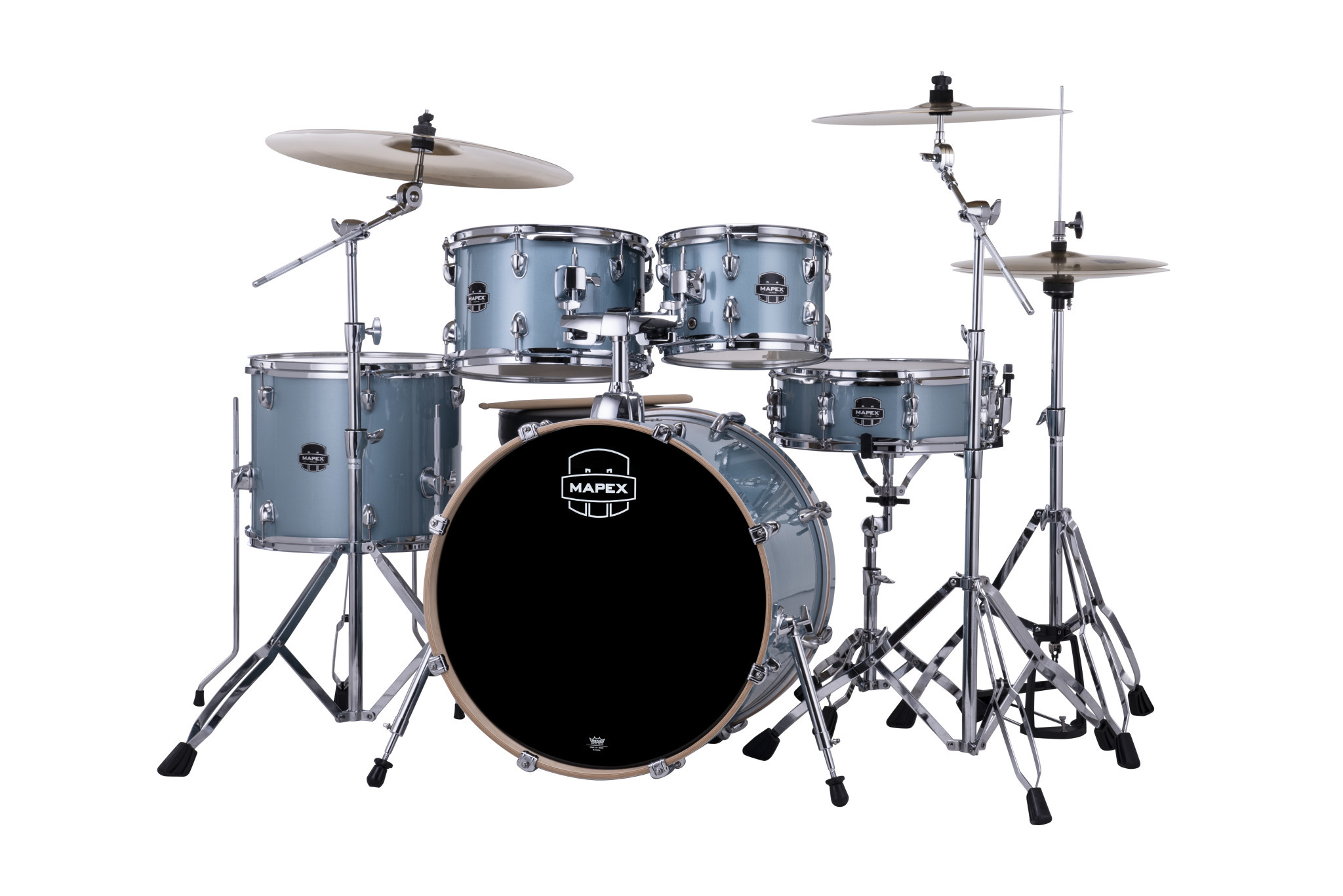The Venus Series presents an all-inclusive setup for the first-time player ready to start the "Drummer for Life" adventure. The 100% poplar shells appointed with Mapex SONIClear™ bearing edges produce rich tones from the toms, a robust crack from the snare drum and a punchy low thump from the bass drum.