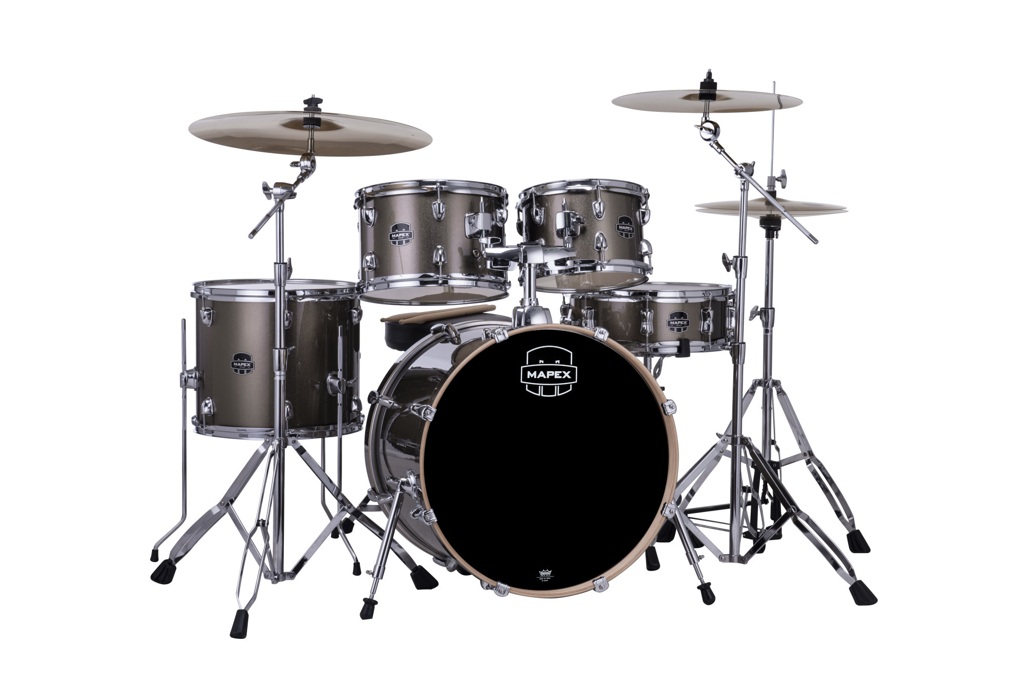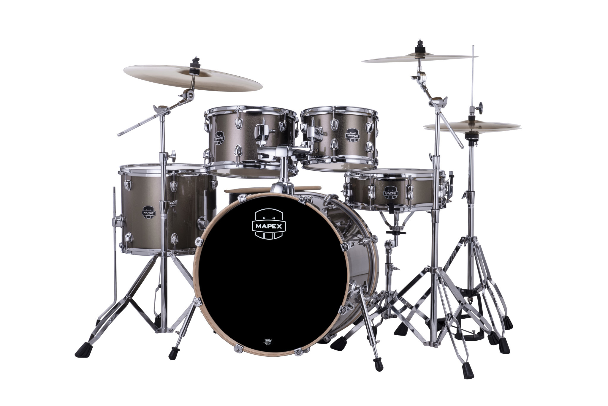 The Venus Series presents an all-inclusive setup for the first-time player ready to start the "Drummer for Life" adventure. The 100% poplar shells appointed with Mapex SONIClear™ bearing edges produce rich tones from the toms, a robust crack from the snare drum and a punchy low thump from the bass drum.