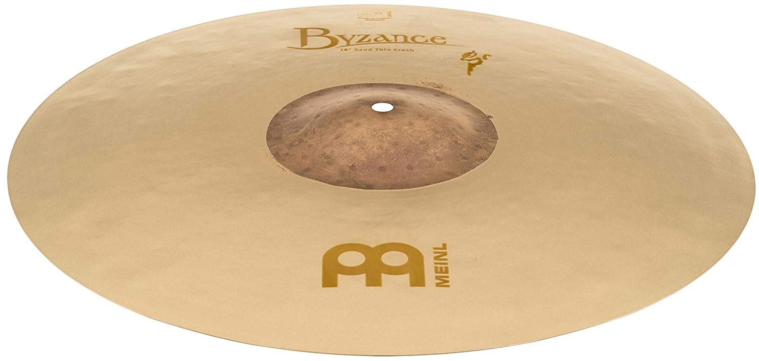 Meinl Byzance Sand Thin Crash Cymbal 18" is a pitch matched, dark sounding cymbal with a short sustain. What stands out is its relatively trashy crash sound with a modern white-noise character.
