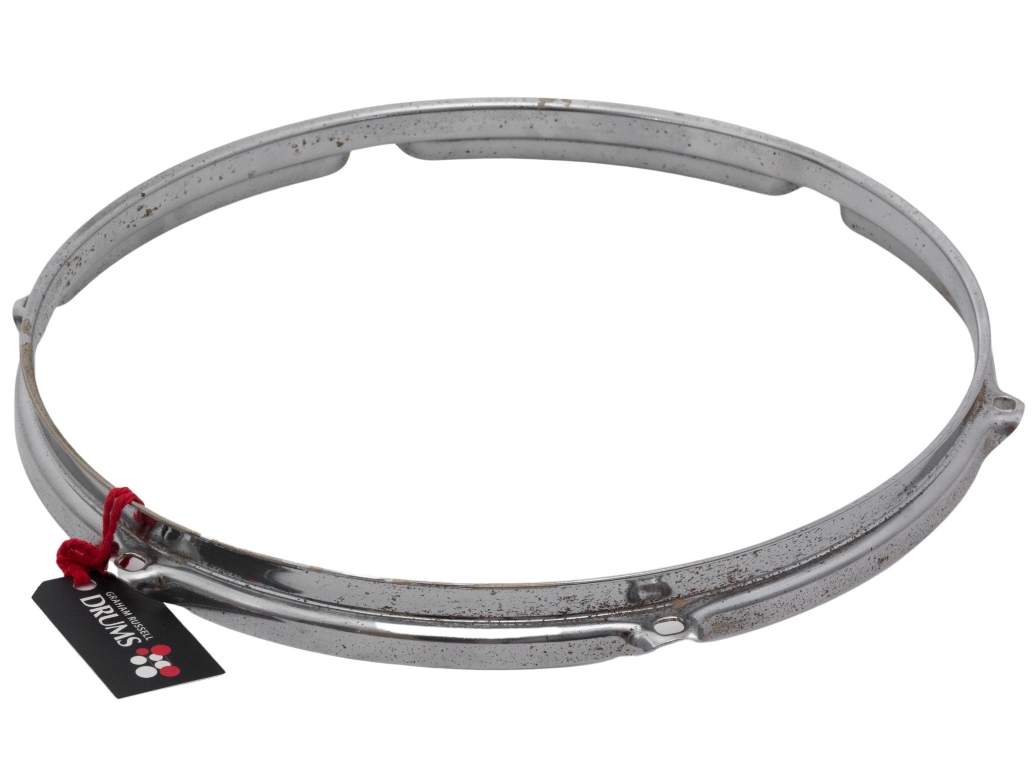 Used condition Miscellaneous 12" 6 Lug Triple Flanged Drum Hoop showing signs of use with notable marks and scratches present as well as a reasonable amount of rust and pitting but still in full working order.