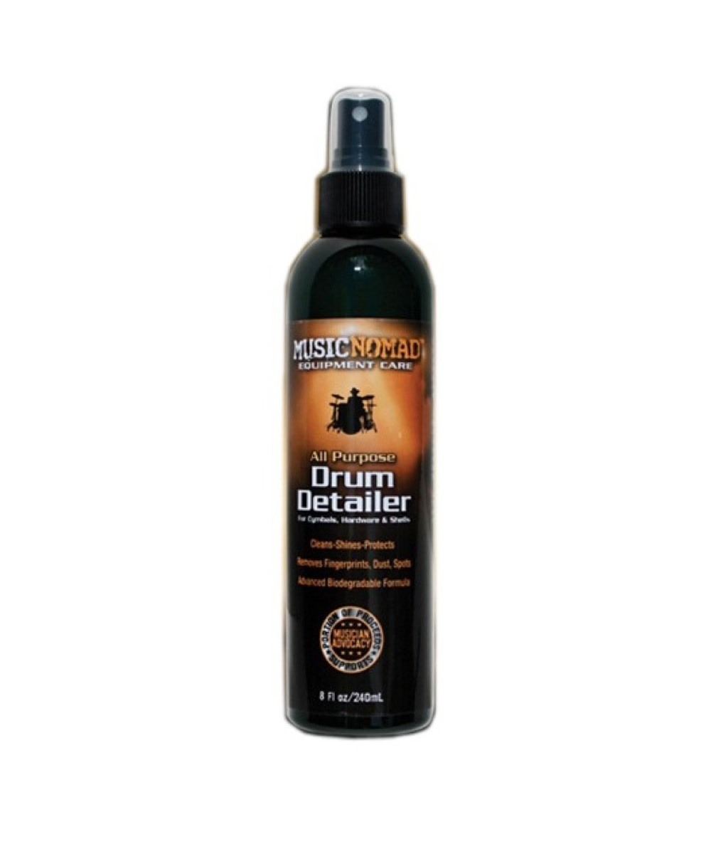 Play it loud and play it proud. Let MusicNomad's Drum Detail Polish do the dirty work and safely clean your entire drum set fast and easy. A single spritz from the atomiser cleans drum shells, hardware, electronic drum pads, and drum thrones. It even can be used for light duty cymbal cleaning for dirt and grime removal. The anti static agents help reduce dust from binding to your drum set.