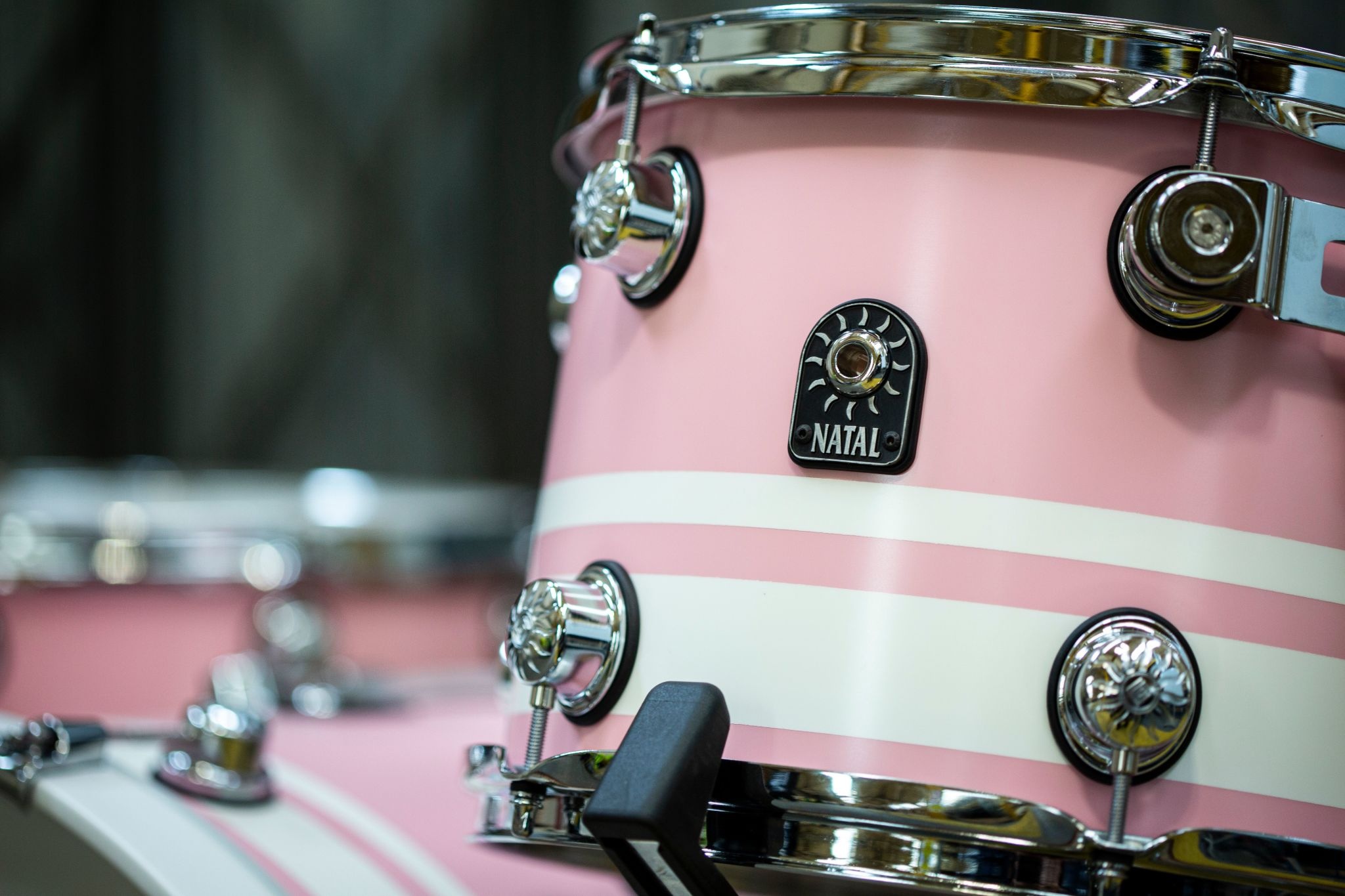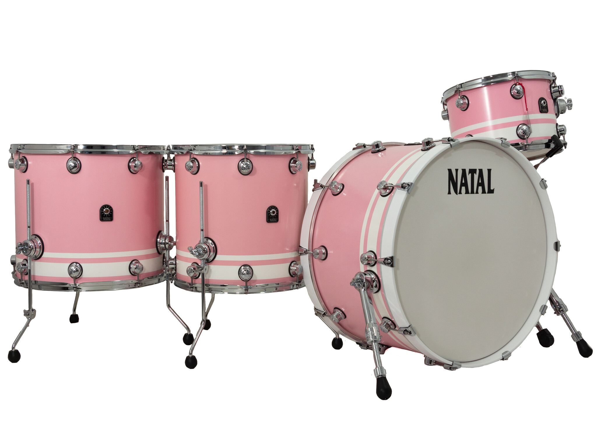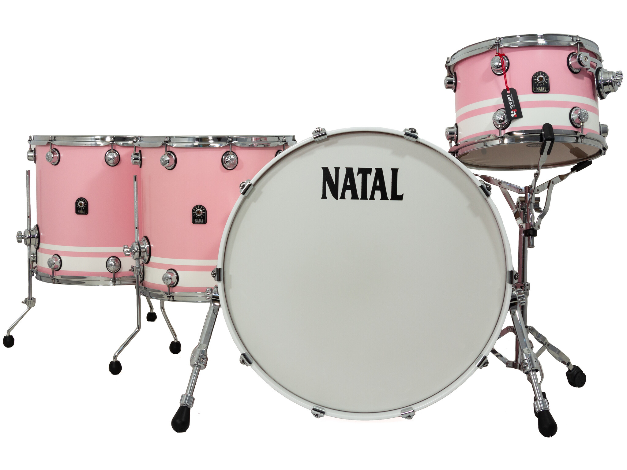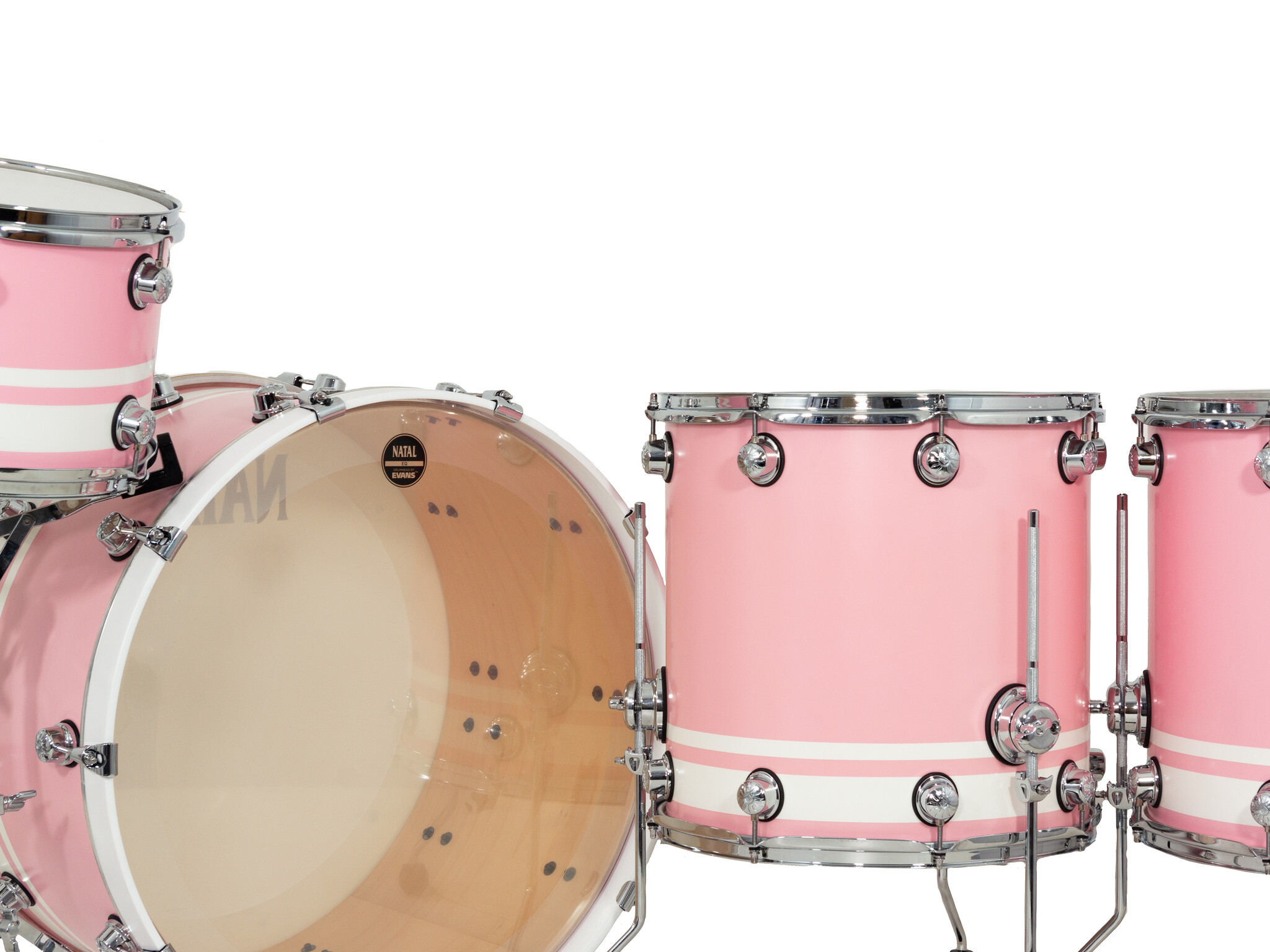 Buy this Natal 'Originals' Limited Edition 24" Maple Drum Kit, Flamingo Pink With Matte White Double Stripe from Graham Russell Drums. Next day delivery when you order before 2pm. Read more
