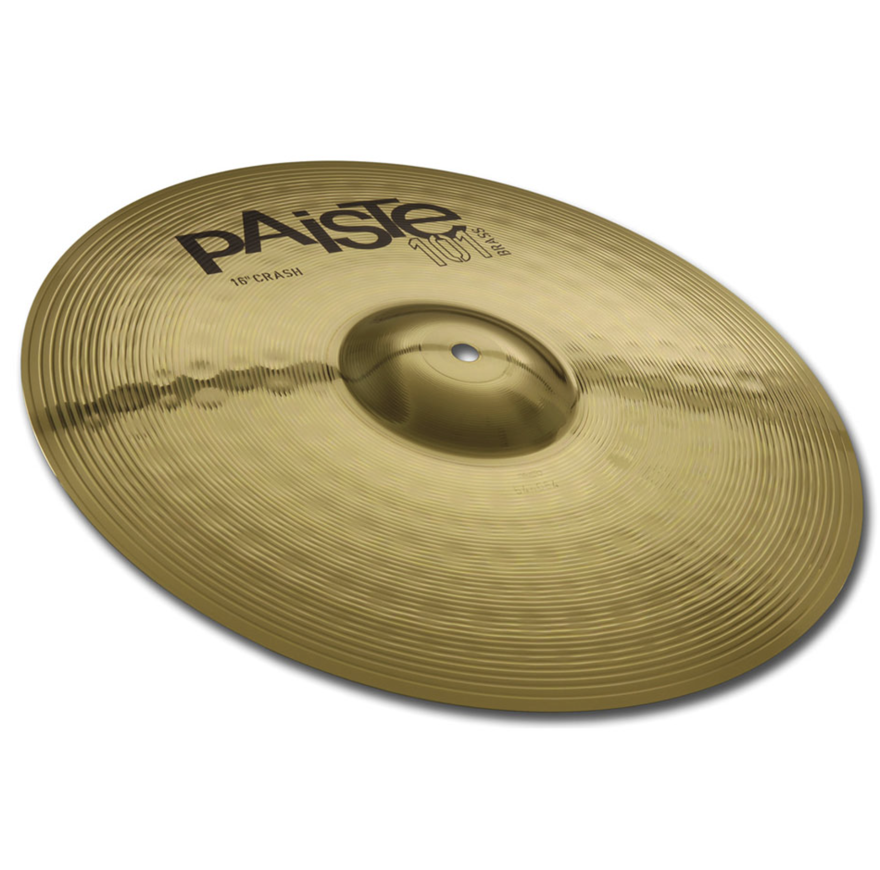 The Paiste 101 Brass Series 16" Crash/Ride Cymbal has a fairly dark, full, focused sound with a medium range, clean mix and even, responsive feel and explosive attack. A versatile crash for all-purpose playing. Paiste 101 Brass Series 16" Crash/Ride Cymbal features: Weight: medium Volume