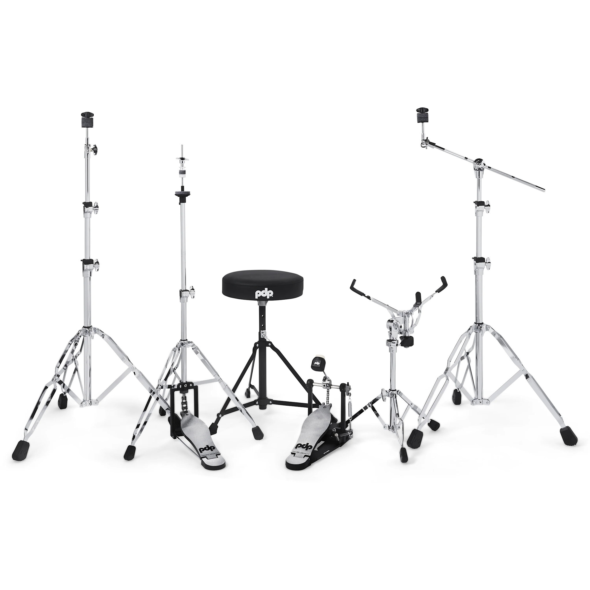 Hardware: Double-braced cymbal stands, snare stand, hi-hat stand, single bass pedal, throne
