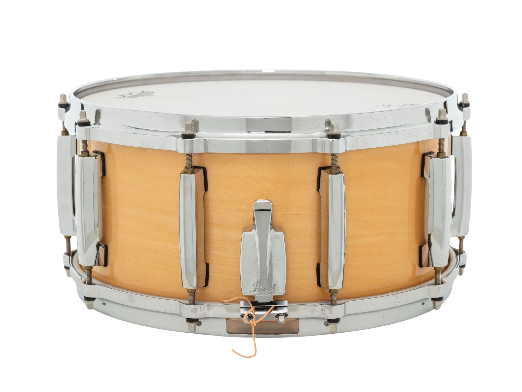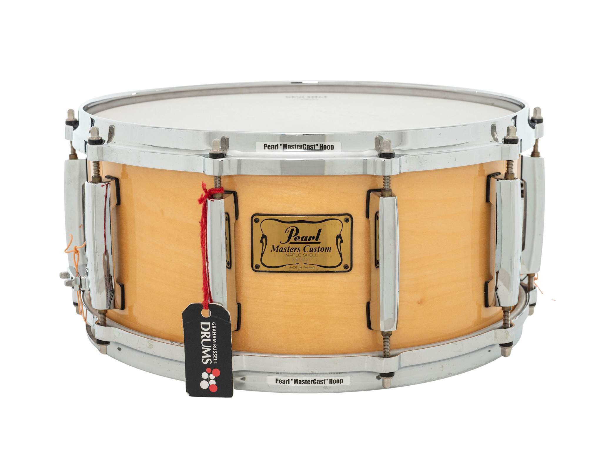 This Pearl MMX Masters 14" x 6.5" Maple Snare Drum, Gloss Natural is now available with us at Graham Russell Drums.