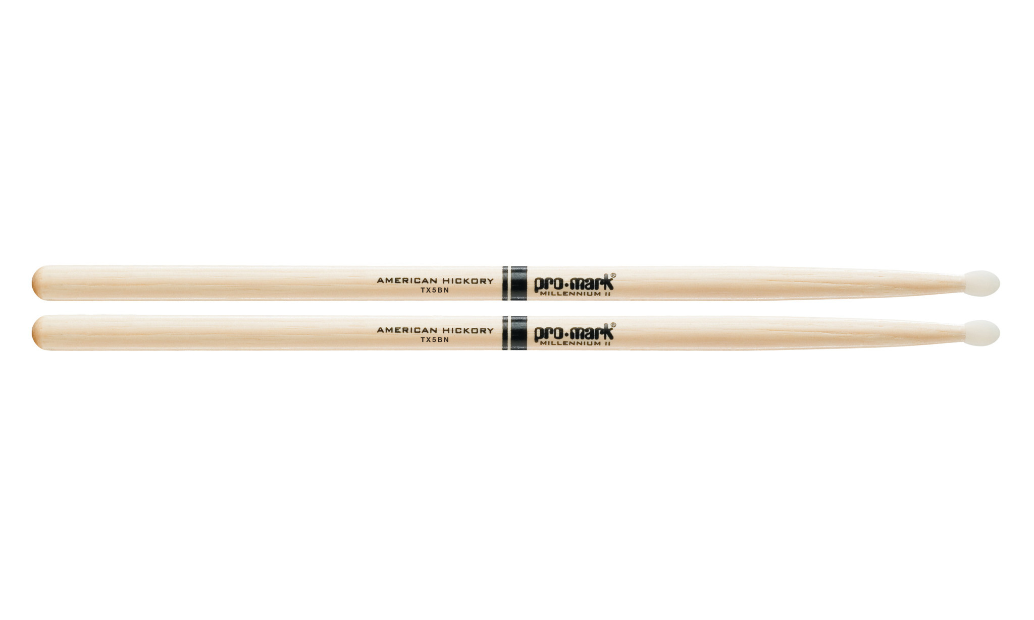 The 5B is a standard diameter drumstick for the heavy hitter; a larger general purpose stick for rock, pop, punk and pop perfect for when a 5A is too small and a 2B is too big. The nylon tip provides a brighter, more articulate sound. Because of its resilience, responsiveness and durability, hickory is the most commonly used wood for drum sticks. Hickory is the classic drum stick feel.