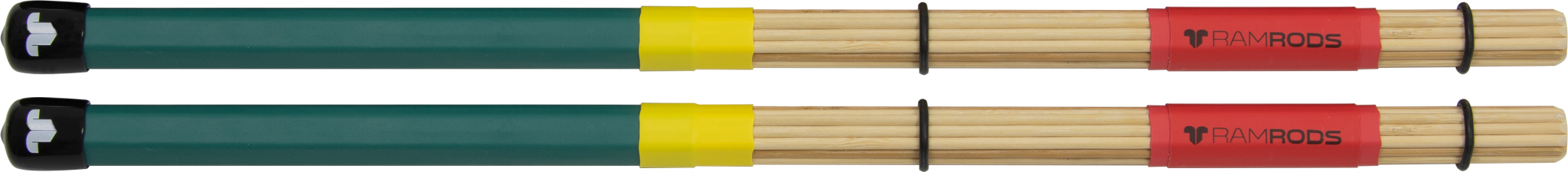 Ramrods Reggae Rods are perfect when you need a little “flex” in your rods to help you ease into the groove. Ramrods Reggae Rods feature a generous rounded bevel to minimise wear on the drumhead. The same specification as Ramrods Classic Bamboo but with a more colourful Reggae vibe. Ramrods Reggae Rods percussion rods are handmade in the UK by drummers for drummers. Using only premium components, our artisan makers craft RamrodsReggae Rods percussion rods on our farm in beautiful rural Warwickshire. Find your unique creative voice and stand out from the herd with Ramrods ReggaeRods percussion rods.