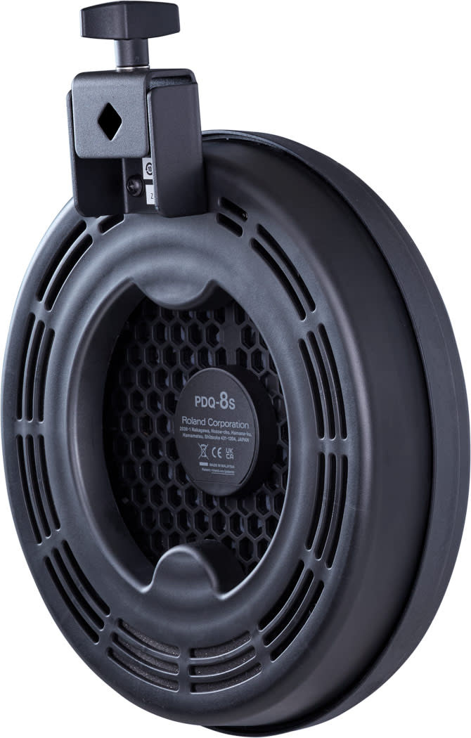 The PDQ-8S snare pad features a noise-absorbing honeycomb rubber insert covered with a mesh head. Carefully engineered vents on the underside of the playing surface allow air pressure to dissipate, further reducing noise. And thanks to the soft rubber rim covering, rimshots are quiet too. Playability remains exceptional despite all these advanced noise-reducing features, with the great stick feel and natural rebound you expect from a top-tier V-Drums pad.