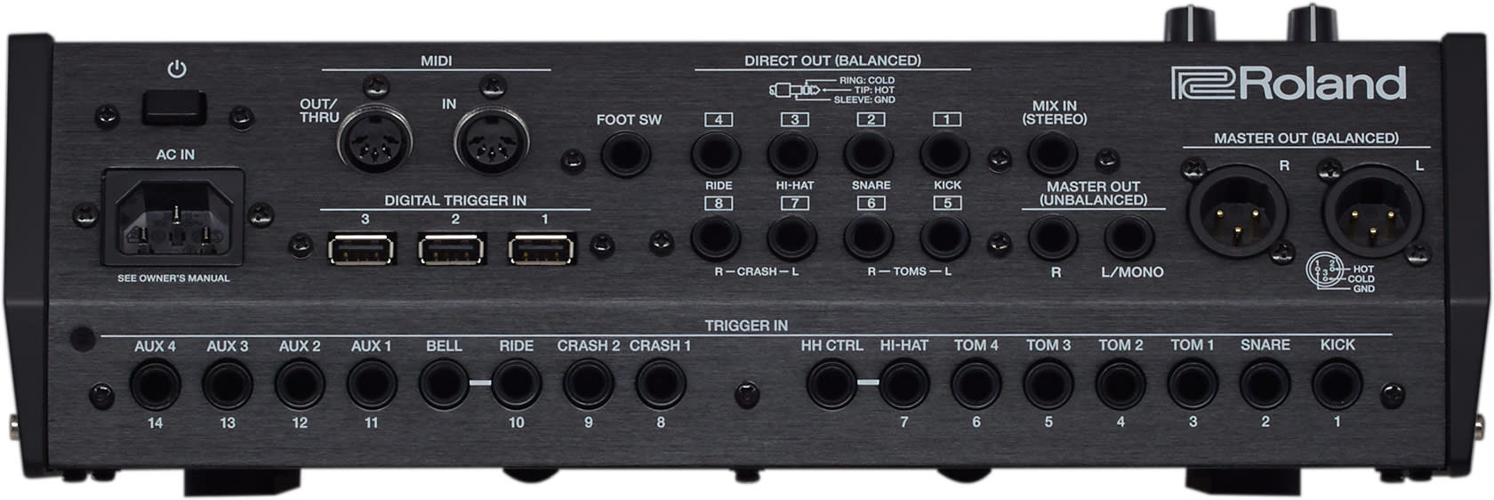 The TD-50X is Roland’s most advanced V-Drums module ever, featuring over 900 premium sounds and full support for our groundbreaking digital snare, ride, and hi-hat pads. Prismatic Sound Modeling brings you the most acoustic-like experience available in electronic drumming, offering incredible depth, dimension, and detail with authentic sound and natural response. Three inputs are provided for digital pads, along with a wide array of analog trigger inputs for our entire range of traditional pads. Deep editing tools make it easy to craft your personal sound, while extensive pro connectivity lets you tackle everything from multitrack computer recording to full-scale arena shows.