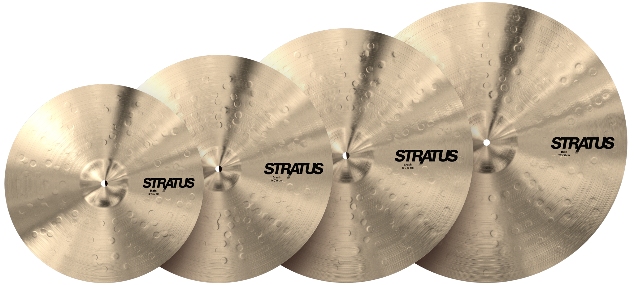 The STRATUS Performance Pack, which features the 14” hi-hats, 16” crash, 18” crash, and 20” ride models from the STRATUS series. The 14” hats deliver an articulate attack with a warm, semi dark spread. The 16” and 18” crash models are quick and controlled with a lower tone and explosive attack. The 20” ride is articulate with a warm undertone that builds to a controlled wash and a strong clear bell. The 14” hats have the perfect combination for crisp, clear attack
