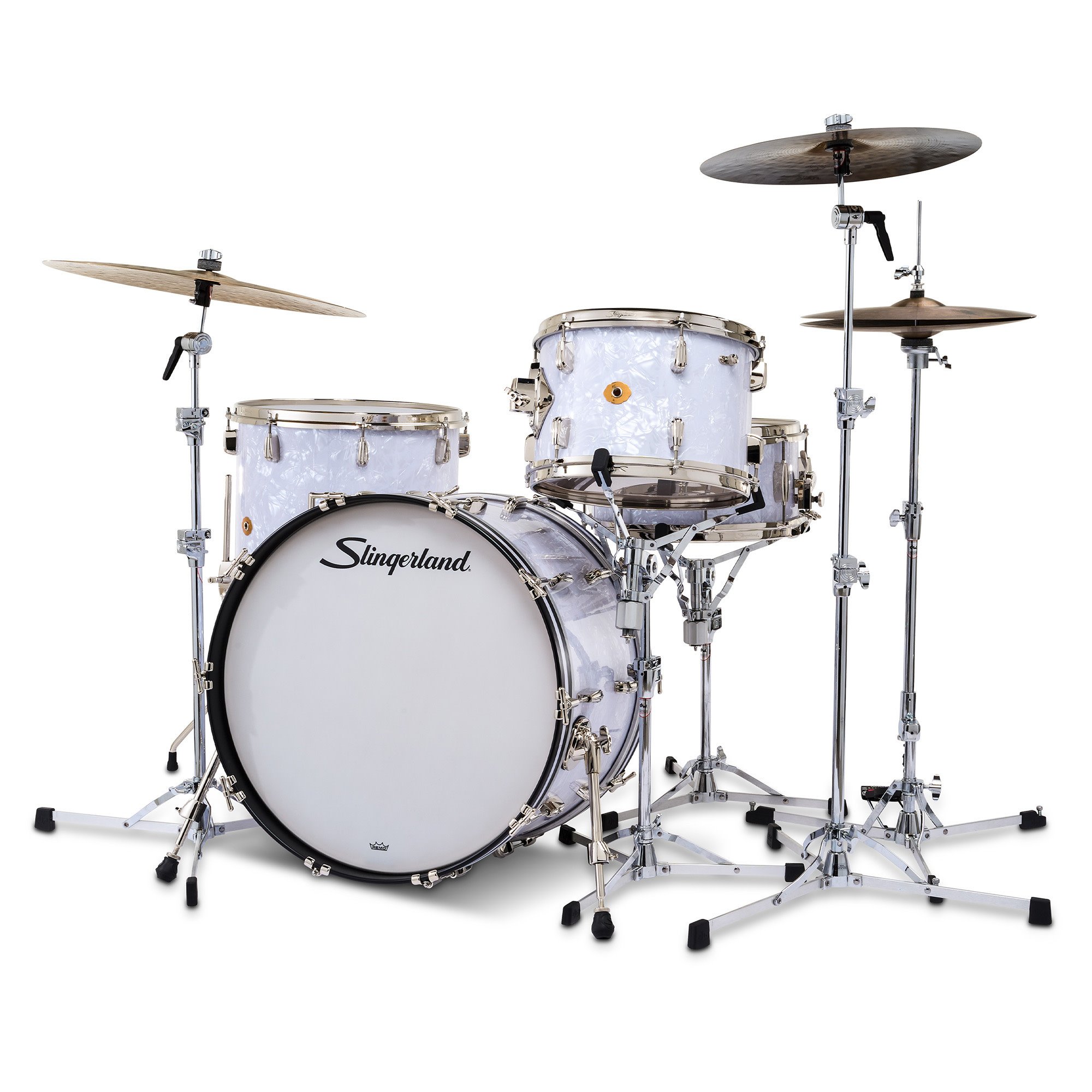 This Slinglerland Radio King 22" 3 Piece Kit White Marine Pearl w/ Matching snare is now available with us at Graham Russell Drums.