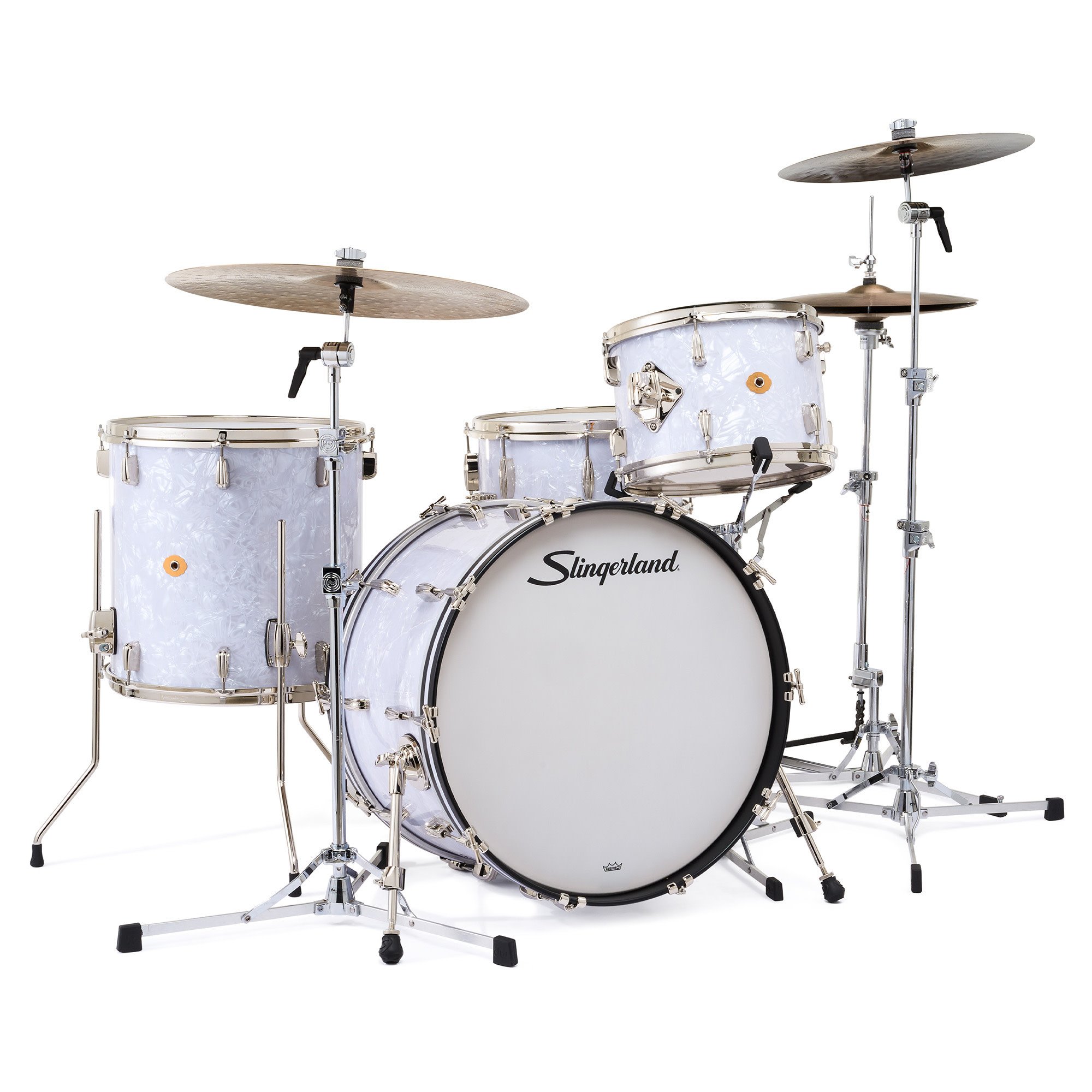 Buy this Slinglerland Radio King 22" 3 Piece Kit White Marine Pearl w/ Matching snare from Graham Russell Drums and receive on our next day delivery service when you order before 2pm.