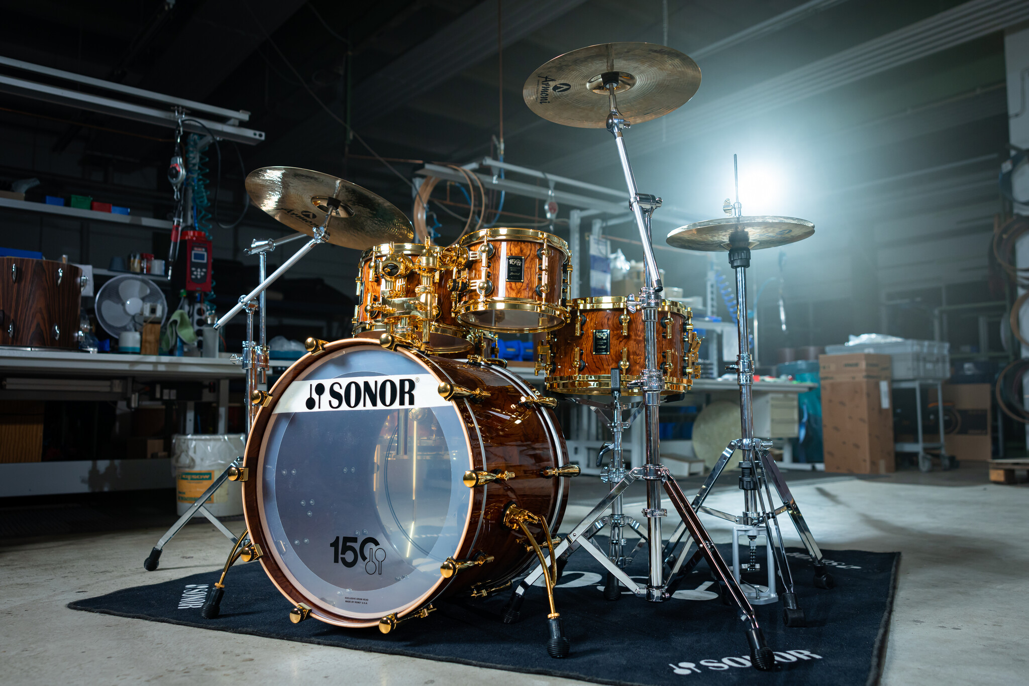Sonor Signature 150th Anniversary 22" Beech Drum Kit, Bubinga High Gloss Lacquer w/Gold Fittings