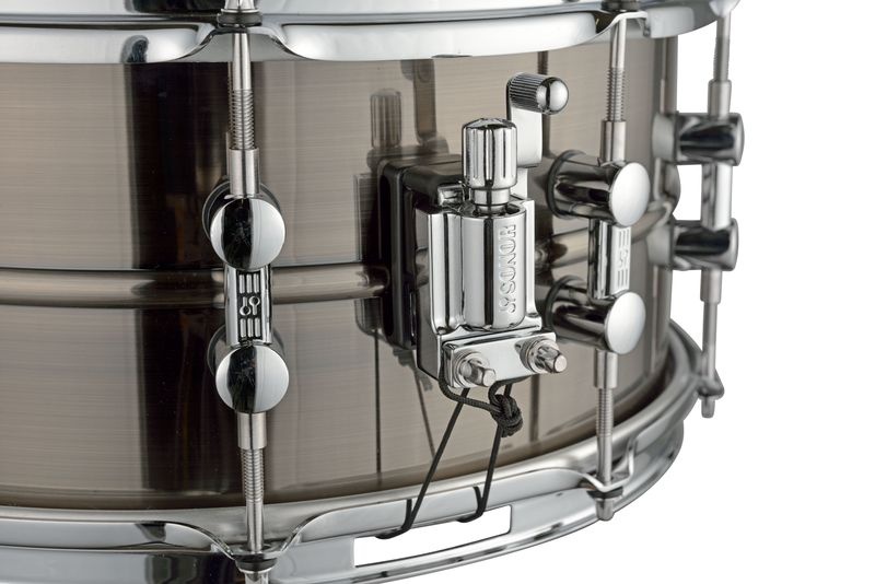 One of the striking features of this snare is the black nickel-plated finish, the nickel colour perfectly complements its stunning chrome hardware, whilst the aesthetic will suit any drum kit. The 1.2 mm seamed brass shell provides an ear-catching sound to match its visual quality, projecting warm and open high and mid tones. Overall the snare's response is incredibly sensitive, with plenty of playing power. Due to its incredible versatility, this is a great snare for powerful rim shots and soft ghost notes alike. Featured on the snare is a standard Sonor snare throw-off, this allows for quick and efficient application and reapplication of the snare to create a wide range of sounds and textures.