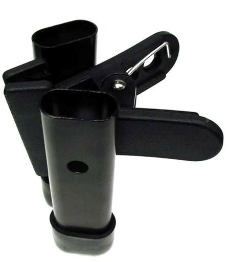 Crocodile-type clip-on stick or beater holder for those embarrassing moments when you drop your sticks.