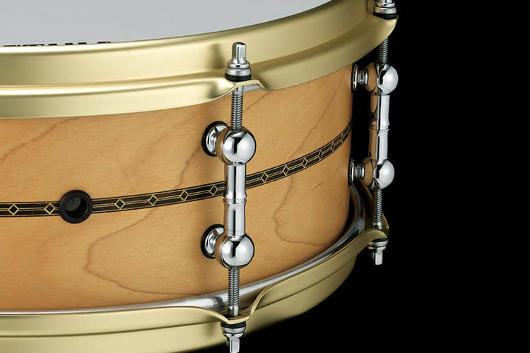 The 1st model of the STAR Reserve snare series was developed to attain unparalleled sensitivity and response for drummers. We combined a solid maple shell with a slightly sharper Starclassic bearing edge and 8-lug Brass Sound Arc hoops to create an ultra- sensitive, clear and bright tone. It also features our newly developed STAR Tube Lugs w/lug nuts for articulate tuning. Supersensitive Hi-Carbon Snare Wires for concert models complete the package, featuring a thin brass plate and softer hi-carbon coils that respond to even the softest touch on the edge of the batter head.