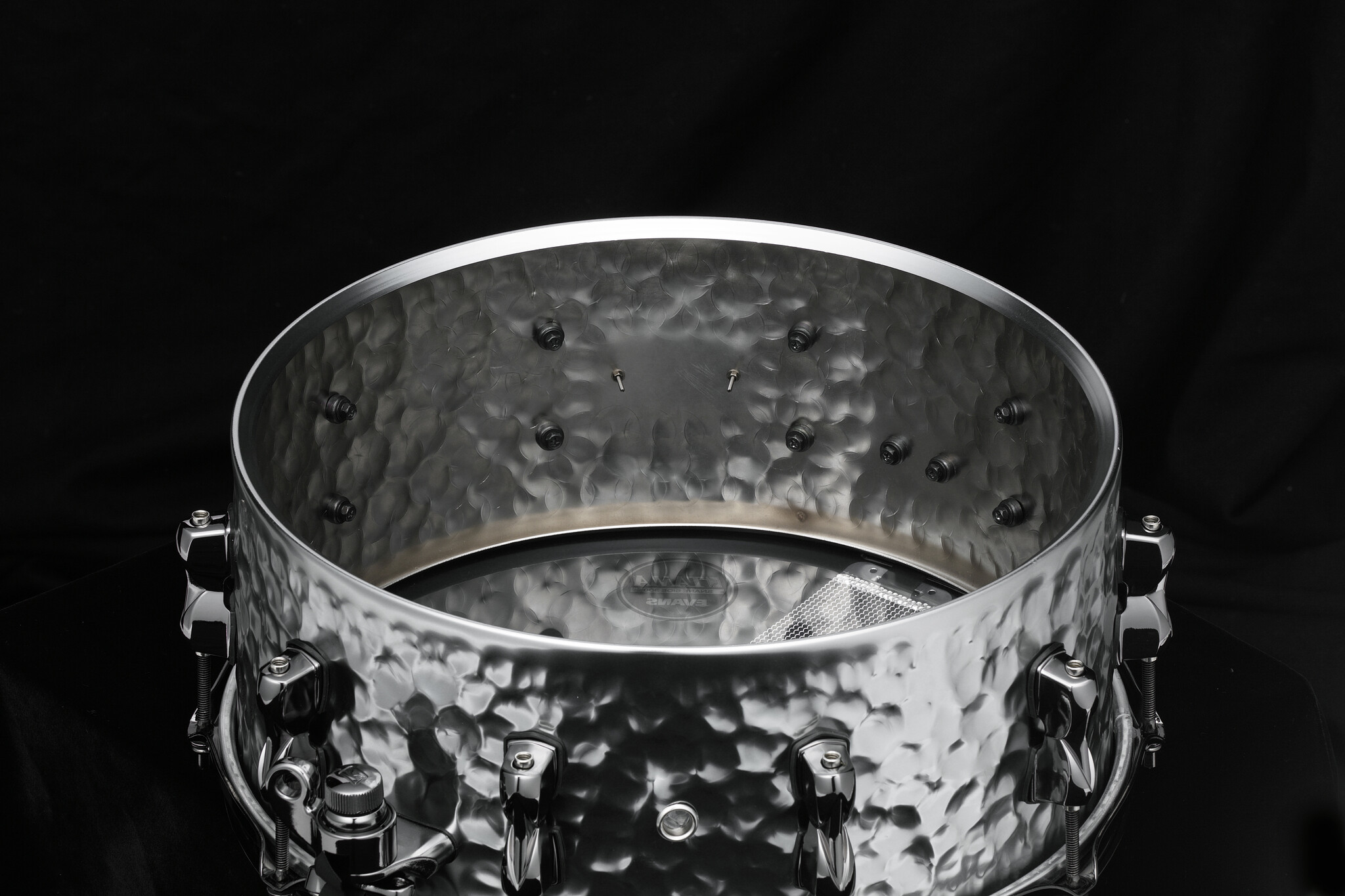 This TAMA S.L.P Expressive Hammered Steel snare drum features a 14" x 6" 1.2mm hammered steel shell. The Shallow depth hammering, glossy finish, and black nickel hardware deliver tonal complexity and sophisticated look. Outfitted with 2.3mm triple flange hoops and Starclassic Carbon Steel snare wires, this snare drum offers a crisp, dry attack with sensitive articulation to perfectly complement the naturally bright and clear steel shell. All of these features come together to create a uniquely musical and balanced snare drum, capable of being a workhorse snare in a wide variety of music styles.