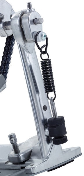 The conventional approach to the spring assembly (including previous Iron Cobra Pedals) has been to anchor the bottom of the spring while the top of the spring is being pulled from various angles throughout the pedal's cycle. But a spring being pulled on at an angle represents wasted energy and causes turbulence. The Swivel Spring Tight assembly solves this problem, recapturing that lost energy and optimizing smoothness through the use of a contoured assembly that allows the base to swivel freely with the spring. This enables a straight spring pull during the pedal's entire cycle, resulting in the smoothest, lightest action ever found on a bass drum pedal.