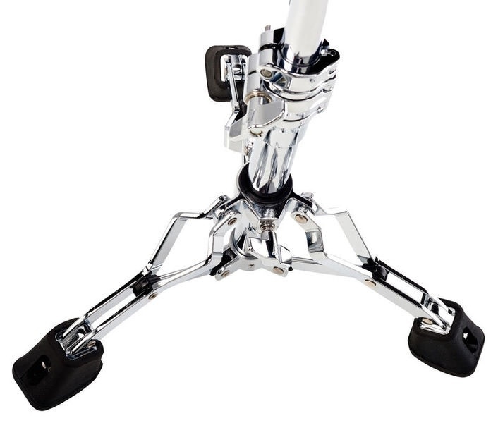 The Tama Star Snare Stand is extremely stable and offers flexible angle adjustment. Equipped with True-Sound insulation mute, the Star Snare Stand minimises stand absorption, so your snare's natural sound will be heard in the mix rather than the stand. The oversized rubber feet with retractable spikes provide extra support and offer great stability even under the most demanding performances. Whether you are using 12'' or 15'' snares, the Tama Snare Stand can accommodate both of these thanks to its preset quick-change snare basket sizing.