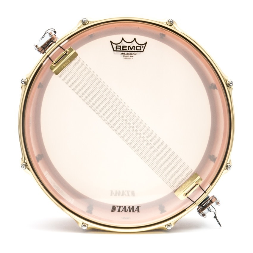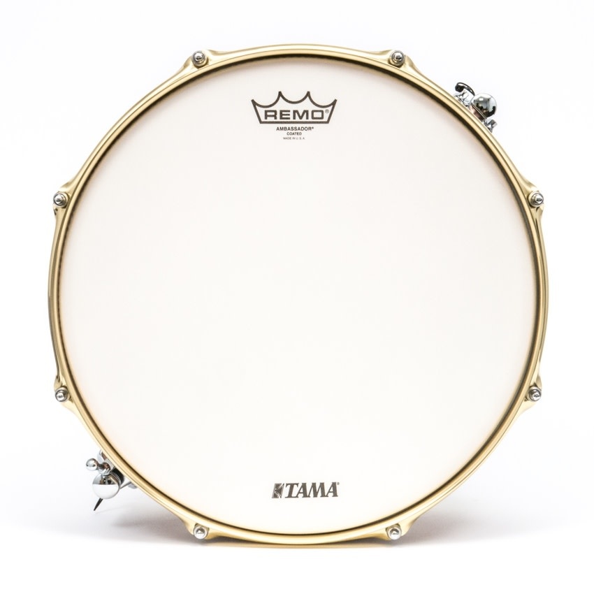This unique shape provides a fat sound and rich resonance. To complement the shell, we used our original 2.3mm brass "Customized Flanged Hoop". The edge of this hoop is slightly shaved down compared to our standard flanged hoop, producing a sharper and brighter attack. The combination of these two different characteristics – warm, rich resonance with sharp, bright attack - offers a totally new and original sound, unlike any other metal snares.
