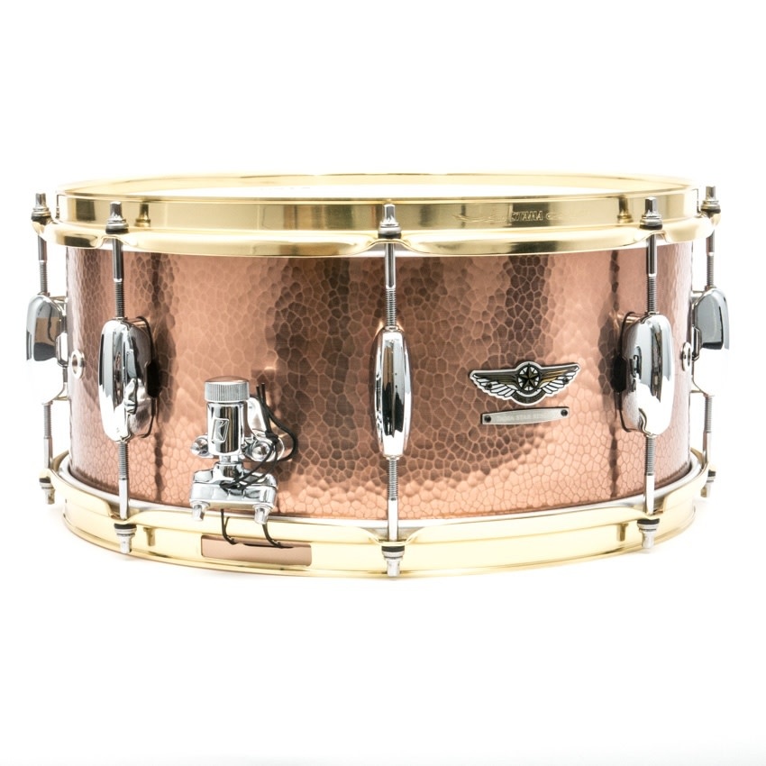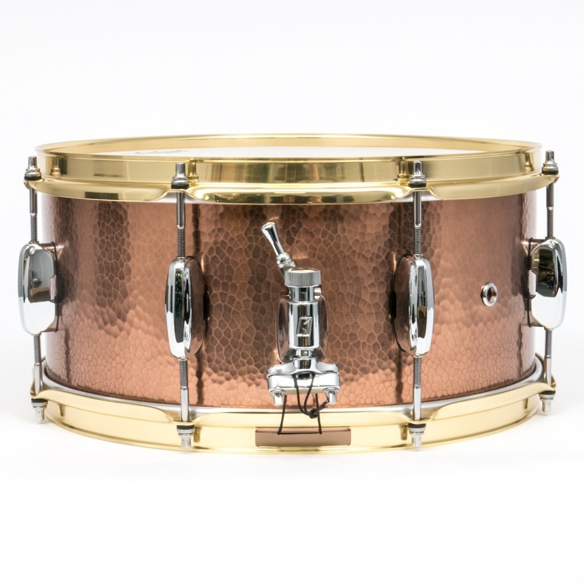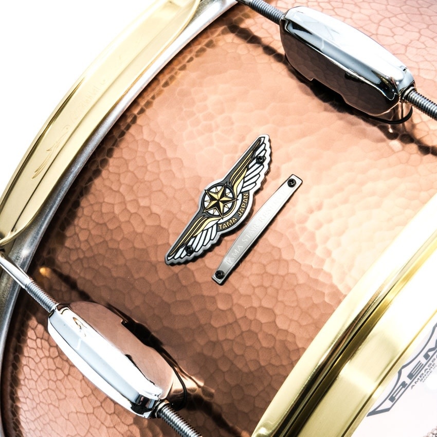 The STAR Drums series' first metal snare features a hand hammered copper shell. In addition to a mid-low end with tons of volume, the hand hammered shell creates a deeply harmonic overtone. A slightly smaller diameter hammer is used on the edge of the shell compared with the hammer that is used on the center, causing the shell to take a barrel shape.