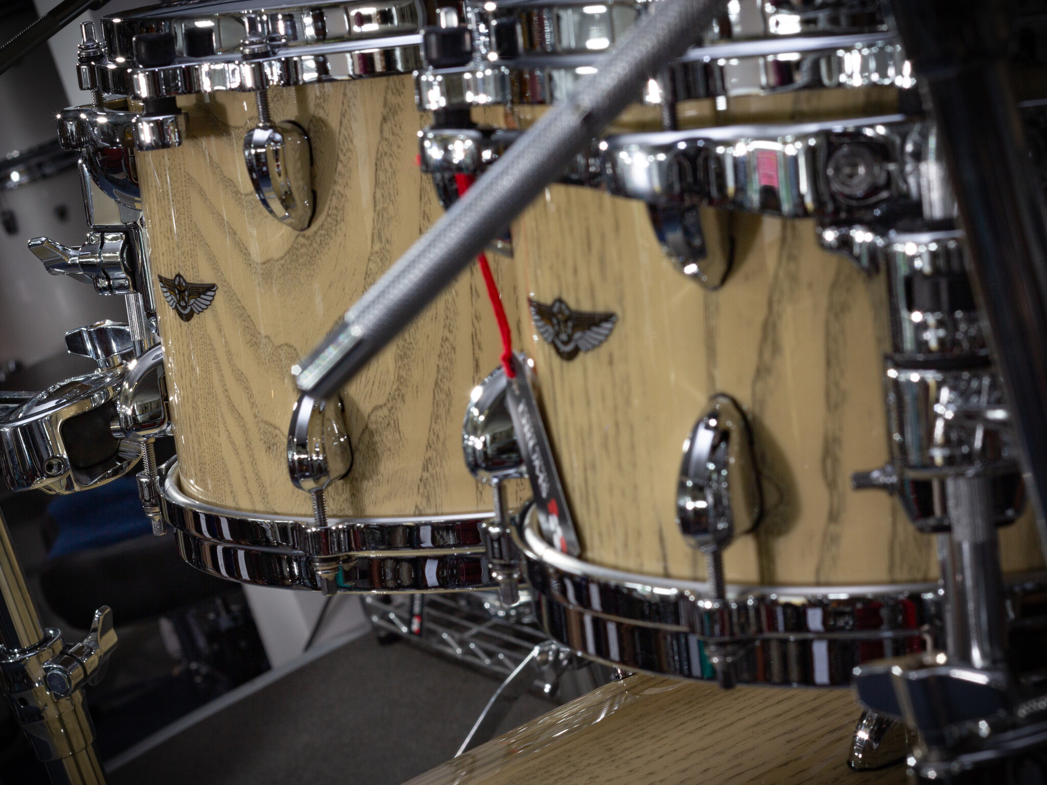 To maximise the resonance of drums, it's very important to prevent the vibration of the shells from transferring to the tom stands. Therefore, in addition to the engineering outlined above, we also utilise rubber at each contact point between the shell and the mounting system, which helps to isolate the shells and greatly reduces the vibration transference.