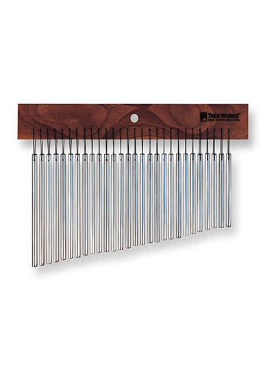 "The Treeworks 28 Bar Studio Chime is a compact version of the Tre44. In studio settings or for acoustic performances you're looking for a less aggressive sound and clear resonance. TreeWorks' Studio Chimes utilize the same T-6 tempered, custom aluminum/ titanium alloy bars now in thinner, .25" diameter."