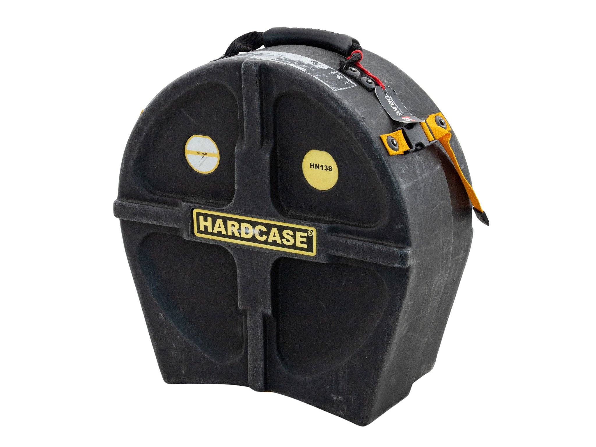 Used condition Hardcase 13" Snare Drum Case showing some cosmetic wear and tear and other signs of use including sticky tape residue on outside but generally in good condition and in full working order.