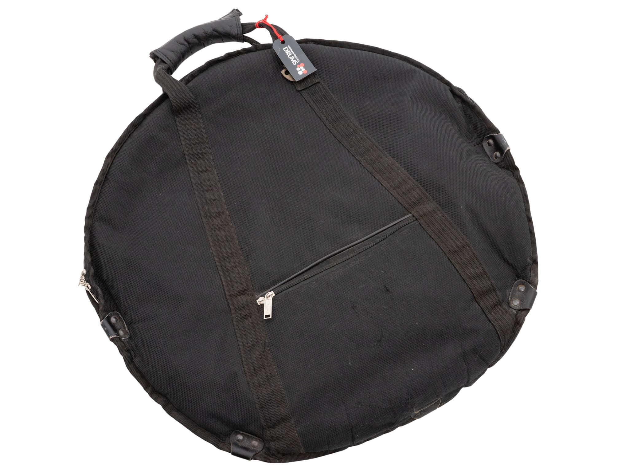Used condition Miscellaneous 22" Cymbal Case showing heavy signs of use with one zip pull missing, some rust to rivets and marks and scratches, but still works as it should.