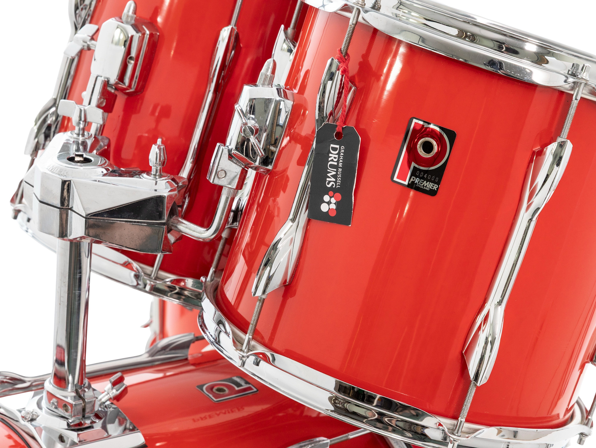 This used Premier APK 22" Drum Kit, Hot Rod Red is now available with us at Graham Russell Drums.